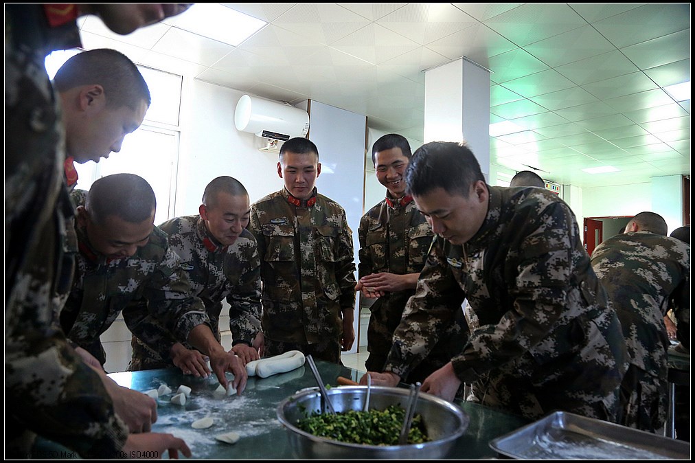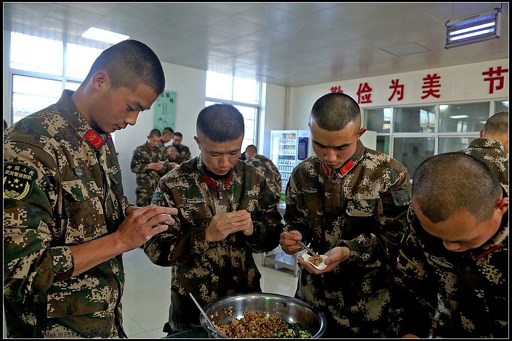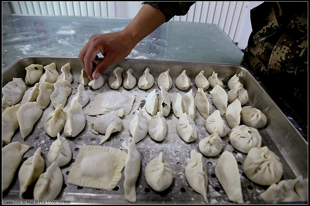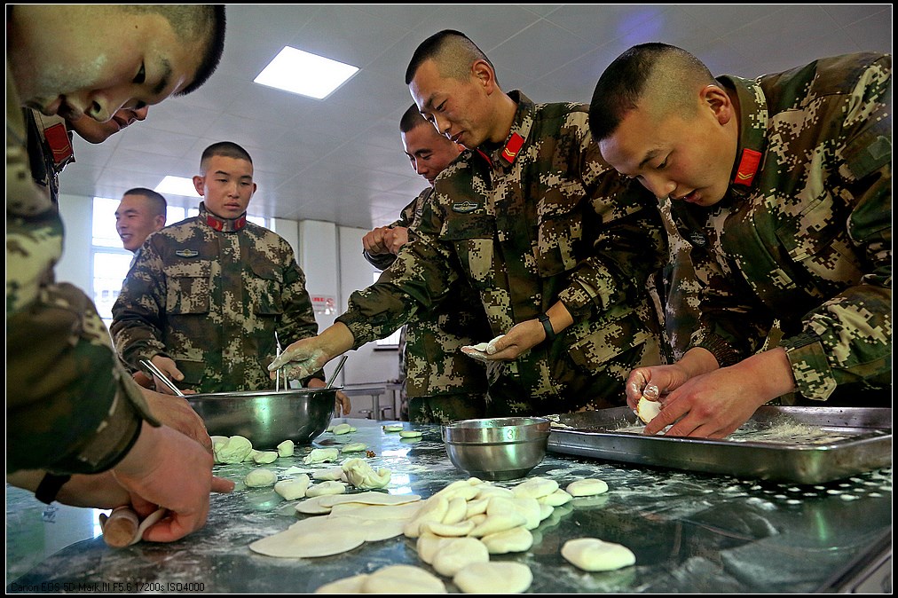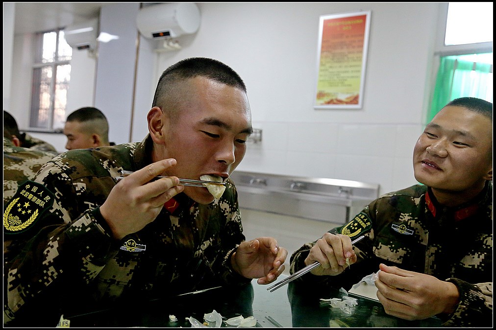中国甘肃在线讯(赵小春报道)“数九寒天”话冬至,饺香情浓暖军营。近日,武警甘肃总队白银支队举行“冬寒冬至、情暖心暖”手工饺创意活动,大家齐聚饭堂绞肉馅、和面粉、揉面团、擀面皮、捏形状,欢声笑语充满整个营区。不一会儿,大家的手工创意饺纷纷出炉,有庆祝嫦娥五号回归的“玉兔”饺,有战友情深的“四海”饺,有搞怪喜剧的“飞碟”饺……一抹抹温暖被官兵包进饺子里,喜迎冬至到来!