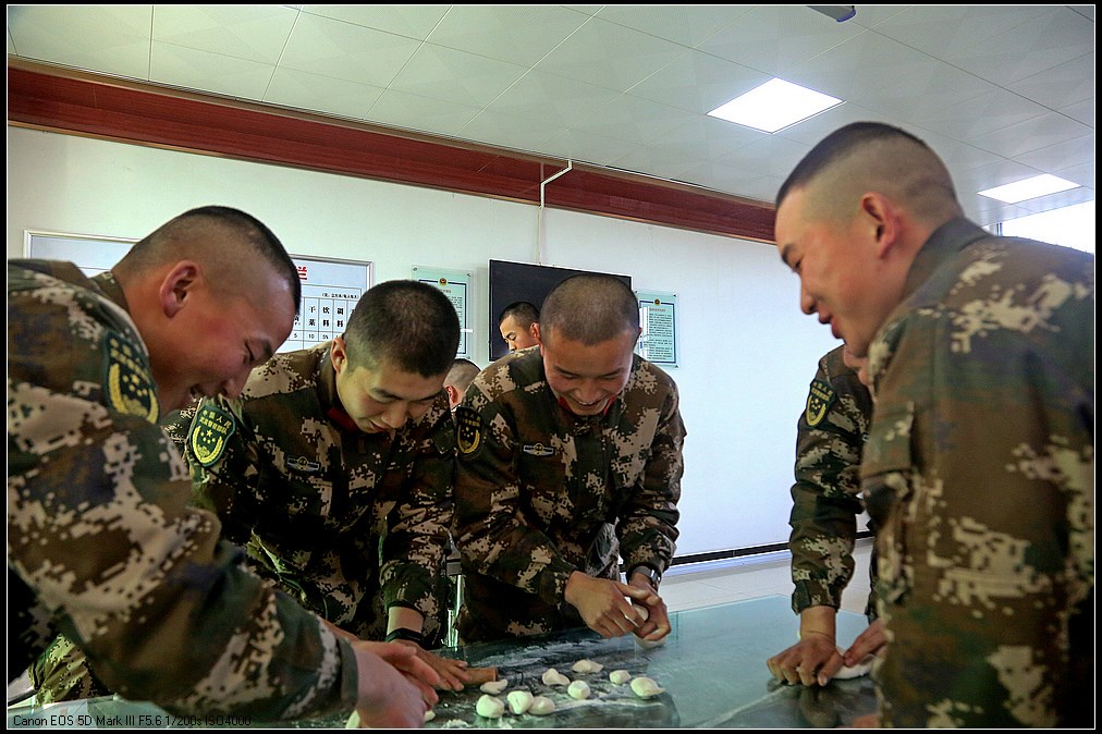 活动现场,官兵之间互帮互助、分工明确,在寒冷的冬天感受到来自部队大家庭的温暖。虽然很多官兵不会包饺子,但是脑洞大开的创意却赢得了大家的认可与鼓舞,形态各异、饱满白净的饺子宛如一张张官兵的笑脸,流露着幸福与温馨。