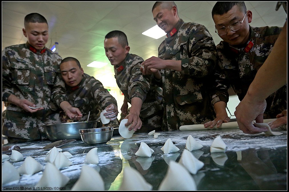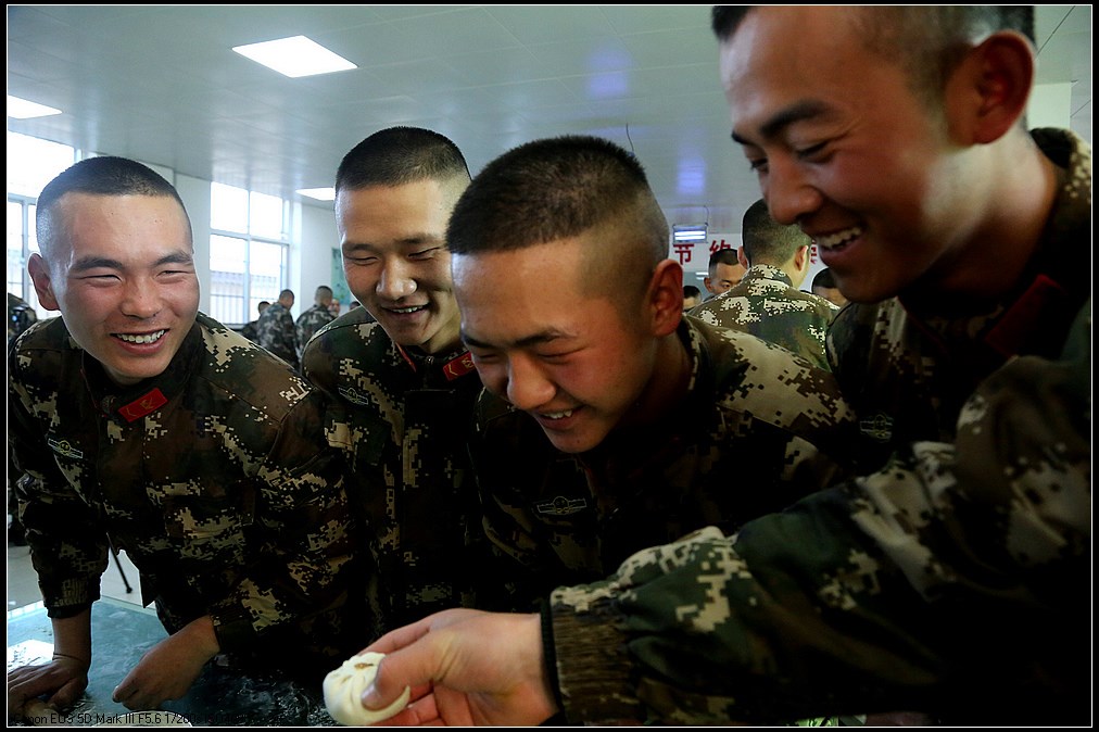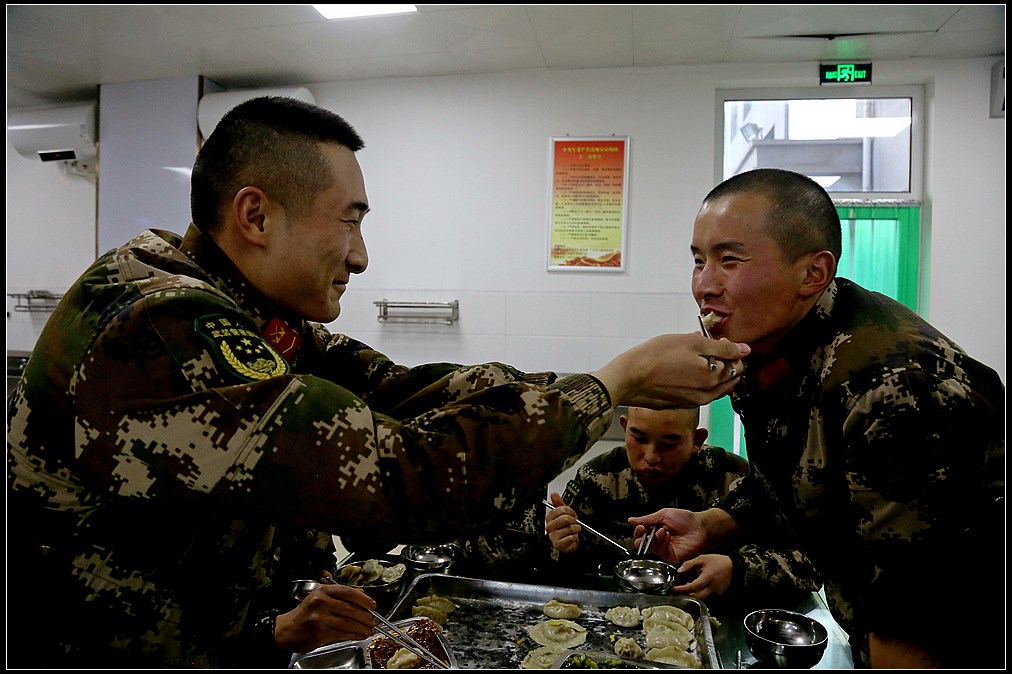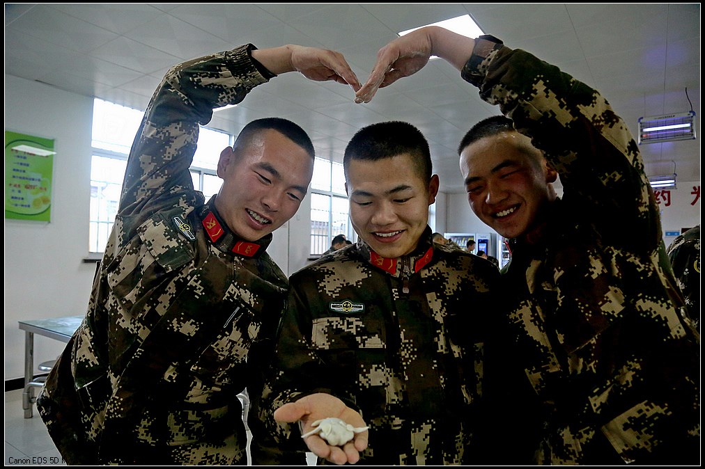 “看!我的饺子不赖吧!”下士刘镇宇托举着可爱的“玉兔”饺,讲述着自己的创意灵感,得到大家一致好评,赢得此次创意活动第一名。最后,一排排独具个性的饺子纷纷下锅,不一会儿清香充满饭堂,大家品尝着自己亲手包的饺子,温暖瞬间流淌心田。