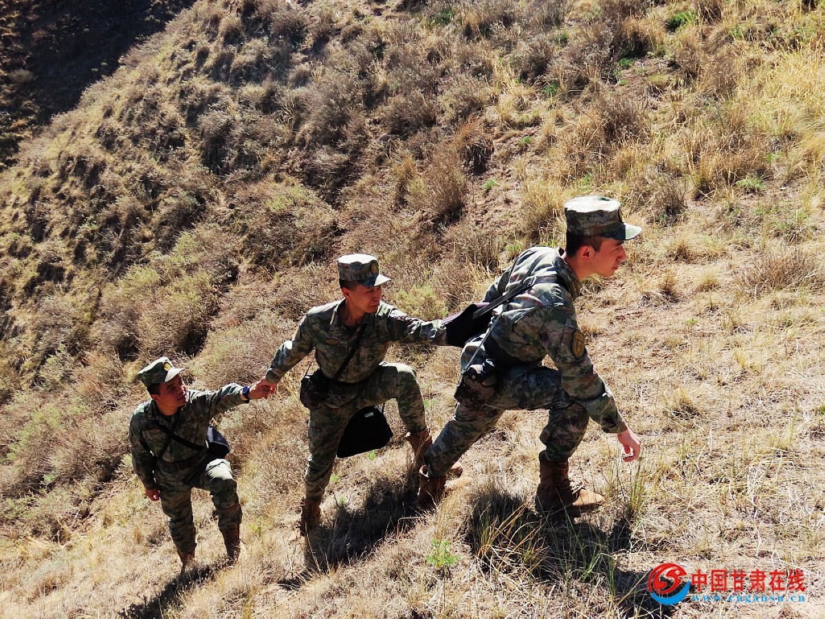 随着目的地越来越近,山势也变得陡峭,耳边也响起了战友的提醒“小心脚下、别滑倒、路不好走”,战友们手拉手团结一心就没有跨不过的山,没有走不了的路。