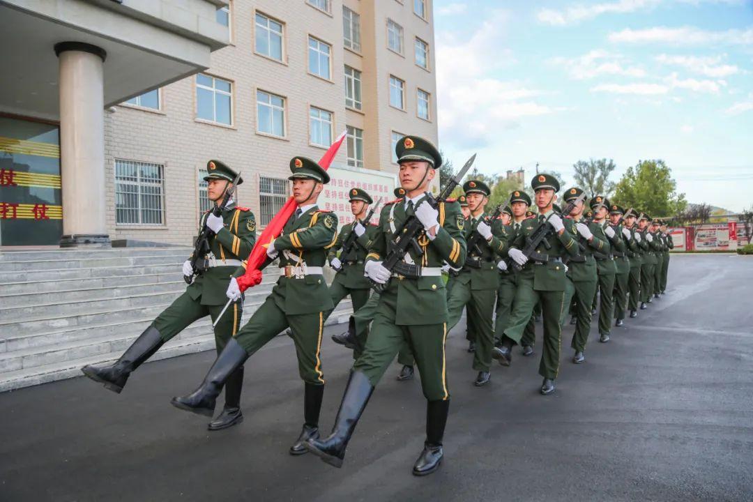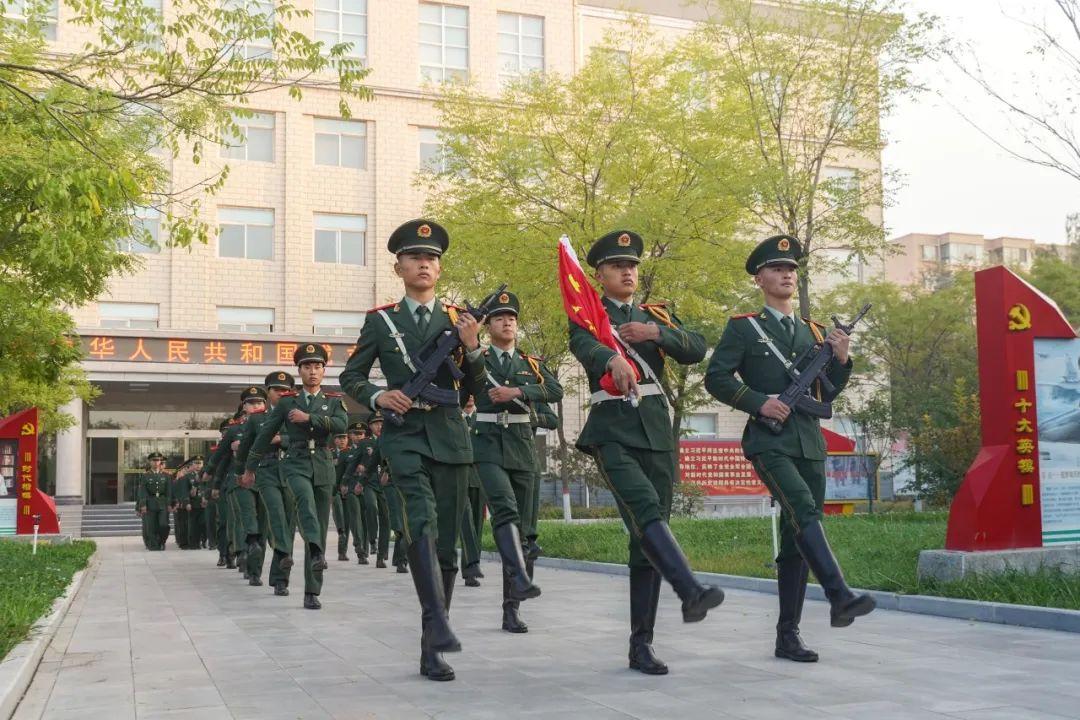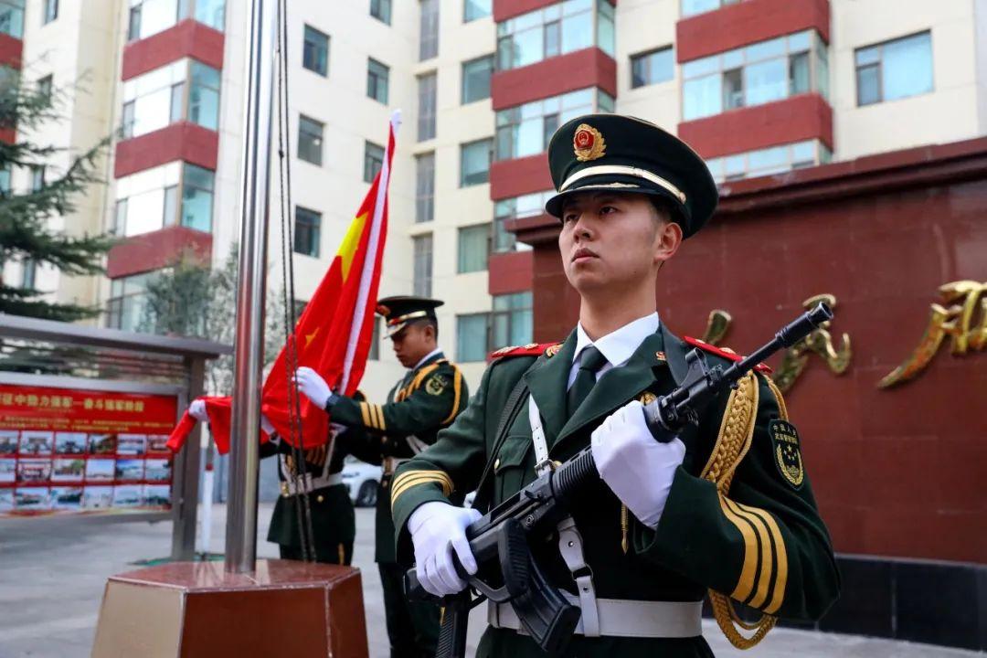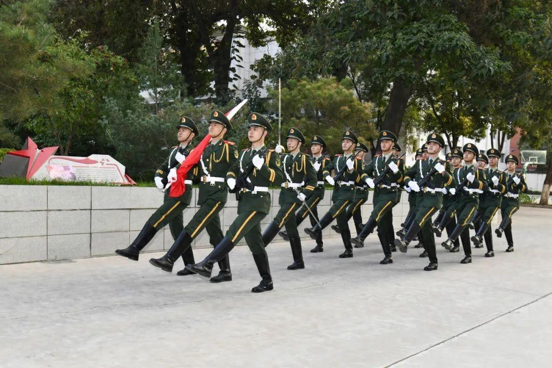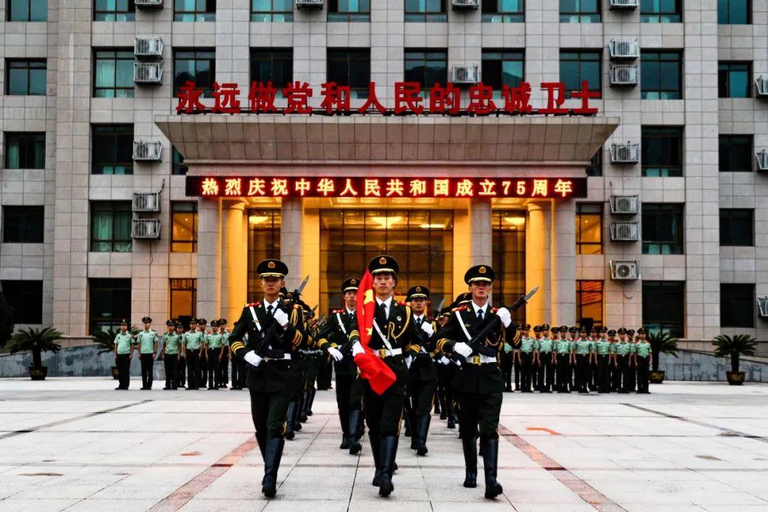 白银支队隆重举行升国旗仪式,英姿飒爽的礼兵步伐整齐,护卫国旗走向国旗台,全体官兵庄严肃立,共同见证这一神圣时刻,为祖国母亲的75岁生日庆生。