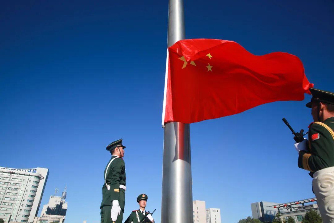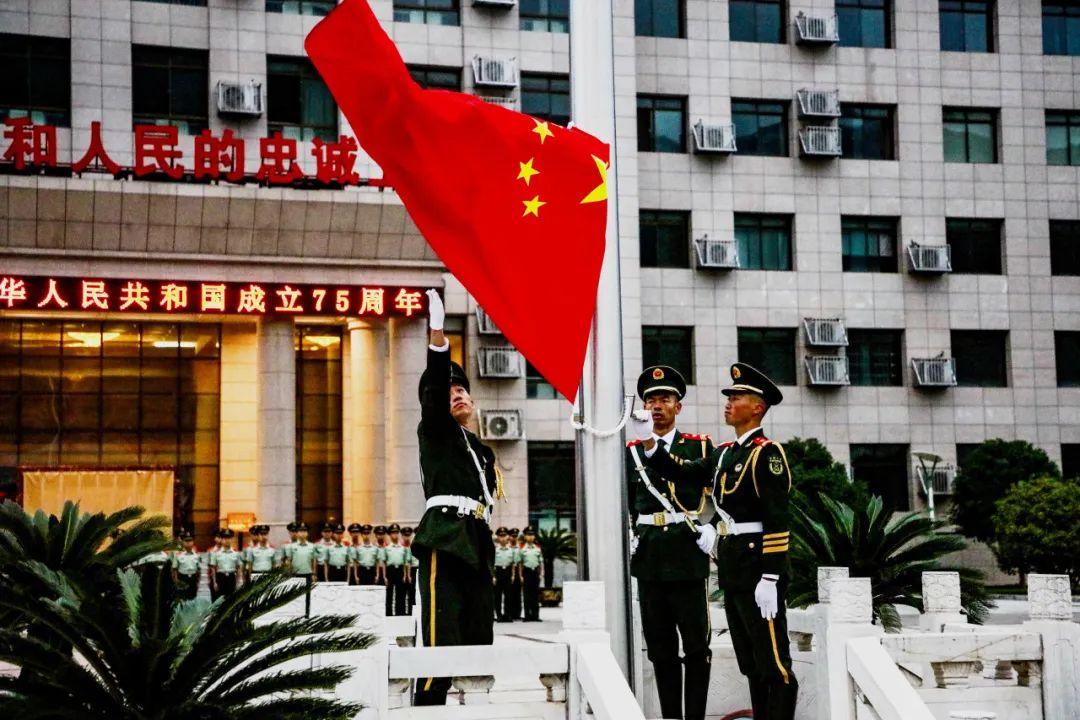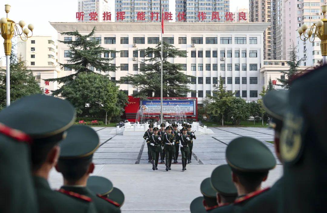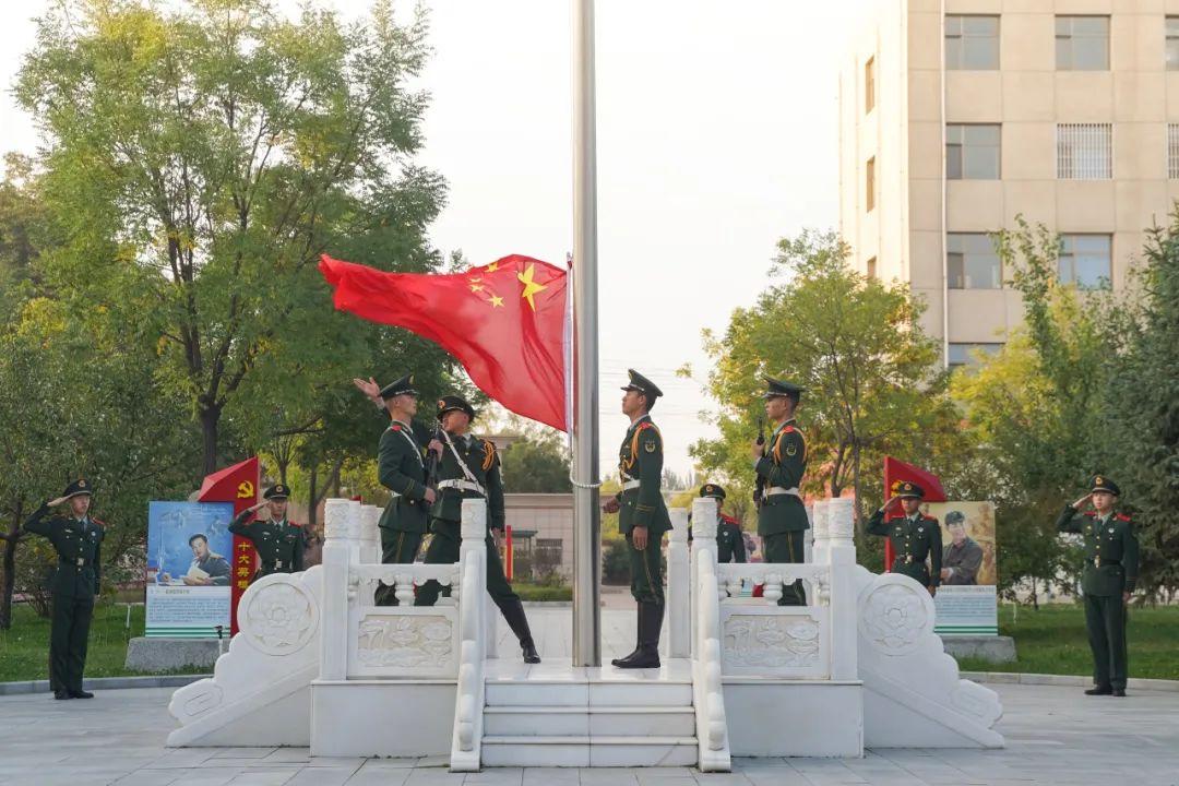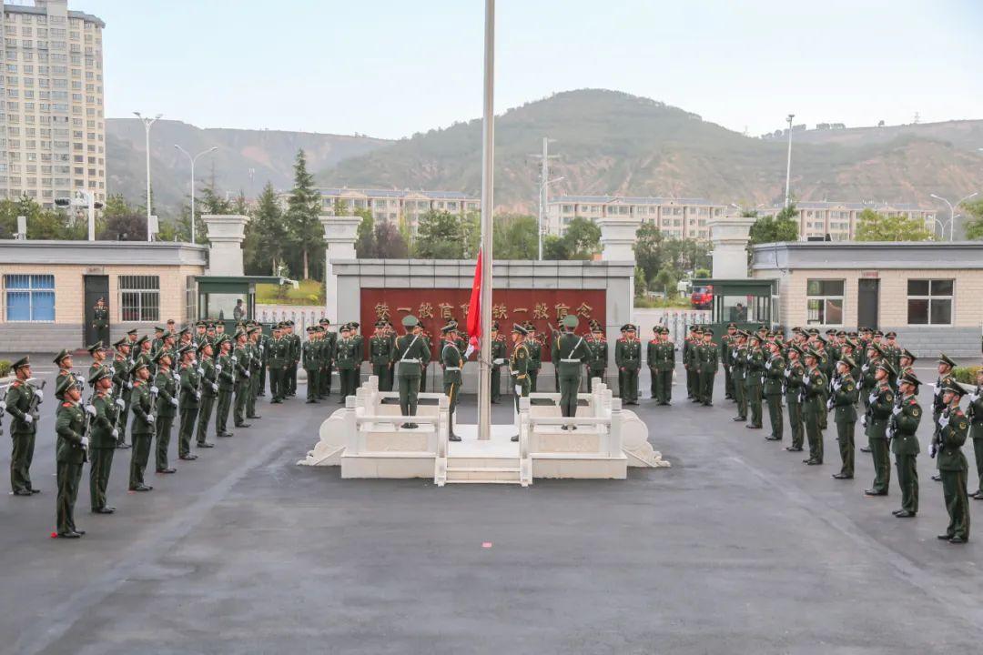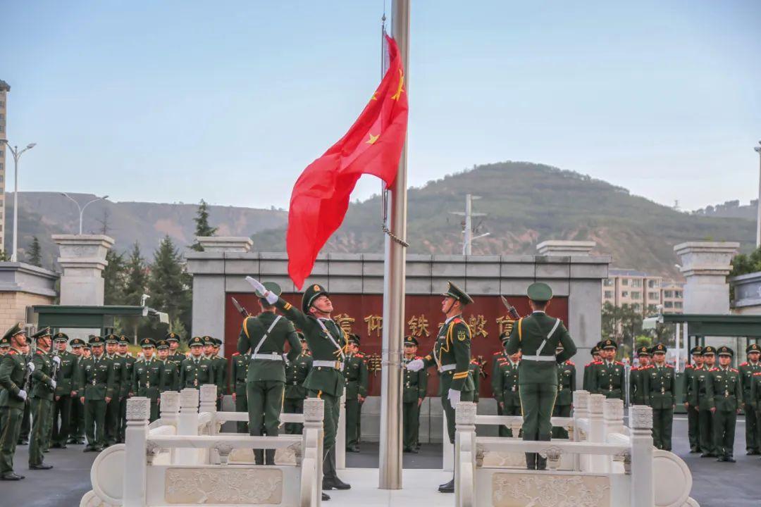 五星红旗迎风飘扬,雄壮国歌响彻军营。10月1日,兰州支队举行升国旗仪式,“升国旗,奏唱国歌,向国旗敬礼……”伴随着雄壮激昂的《义勇军进行曲》,升旗手迎风振臂,五星红旗在官兵的注目下缓缓升起,全体官兵整齐列队、精神抖擞,面向冉冉升起的国旗庄严敬礼,表达对伟大祖国的祝福。