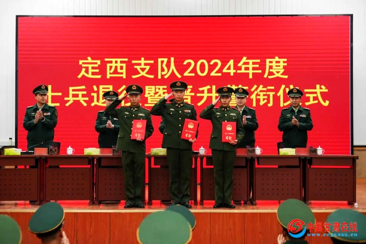 近日,定西支队隆重举行2024年冬季士兵退役暨晋升警衔仪式。仪式在雄壮的国歌声中拉开序幕,全体官兵军容严整、精神抖擞,支队领导现场宣读警士退役命令和晋升警衔命令。