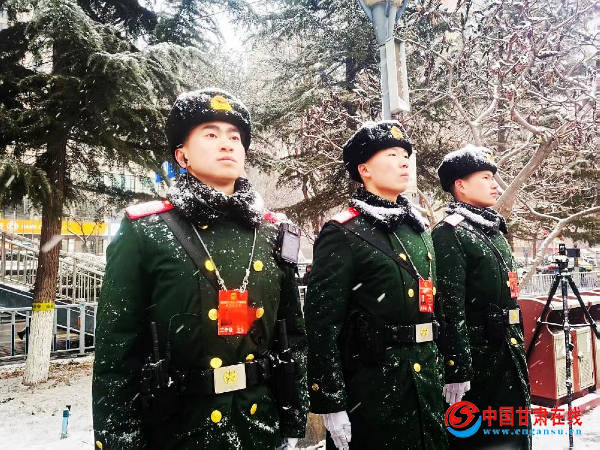 正在担任执勤任务的武警甘肃总队官兵