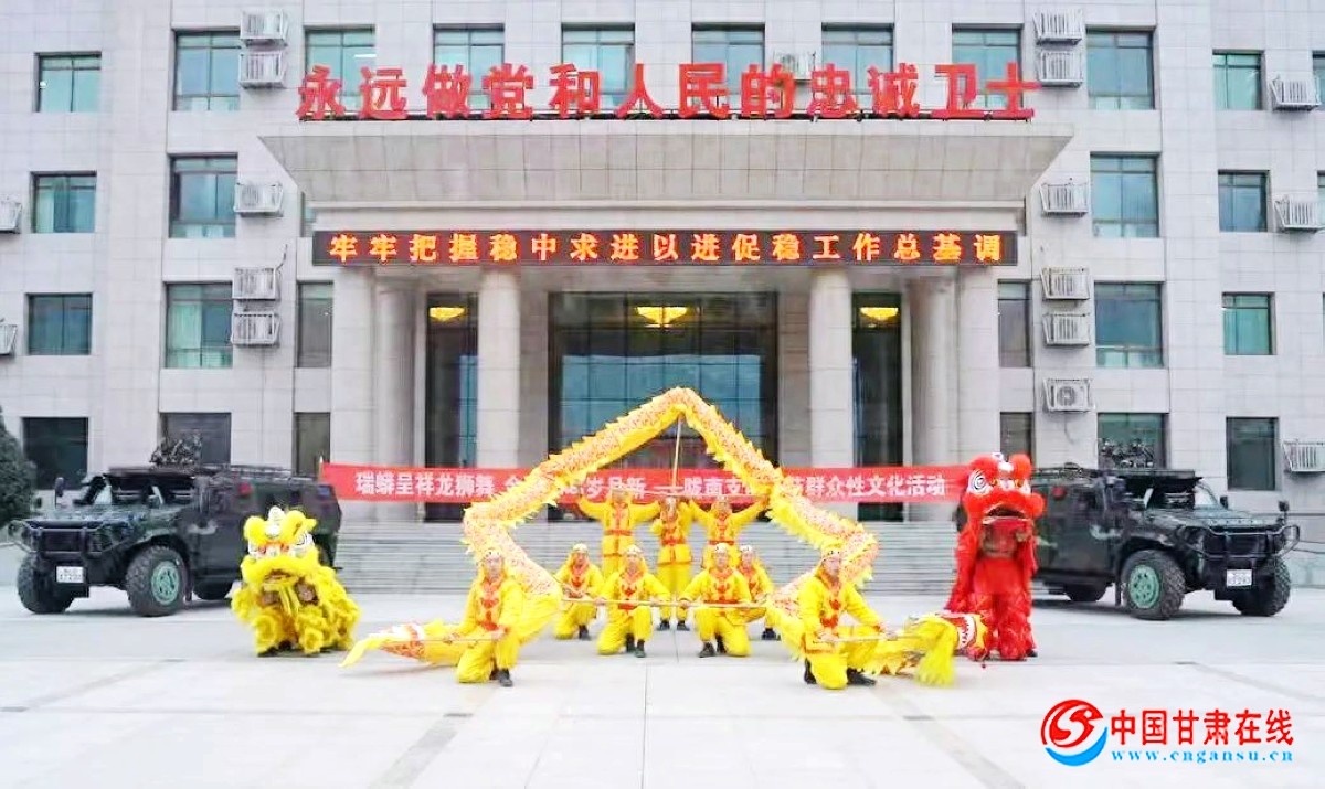 中国甘肃在线讯(文/图 张明轩 梁健良 赵雨豪报道)金蛇报喜辞旧岁,福满军营迎新春。连日来,武警甘肃总队临夏支队的官兵们迎来了又一个“军营春节”,让我们一起去看看属于咱们兵哥的独特“年味儿”。恭贺新禧恭贺新禧舞狮作为一项历史悠久的非遗...