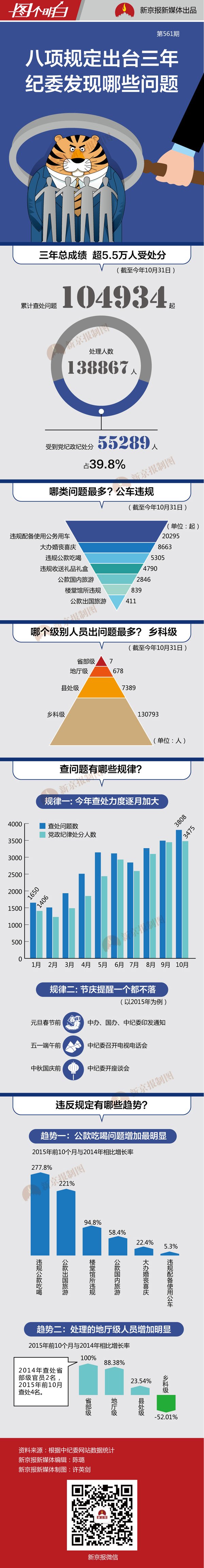 今年12月4日,是八项规定出台三周年。三年中,几乎每个节日前夕,各级纪检监察机关就会发文件、开会或者搞座谈,提醒官员们廉洁自律,正风肃纪。但还是有些人不在意。三年里,有13.8万人因为违反八项规定精神被处...
