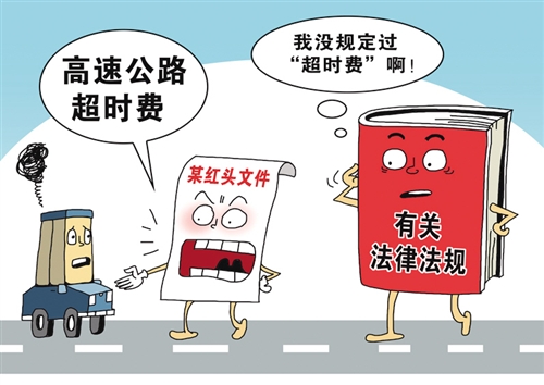 朱慧卿作(新华社发)  据报道,有一些地方通过“红头文件”规定,经过高速公路路段,大大超过正常行驶时间的车辆,如无法提供充分理由和有效证明,就必须缴纳超时费。法无授权不可为,我国道路交通法、公路法、《...