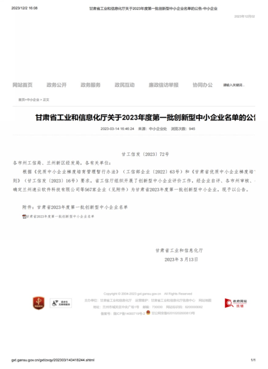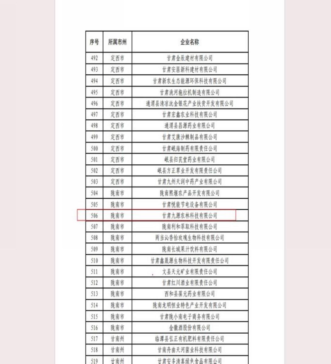 3月29日,甘肃九源农林科技有限公司被甘肃省工业和信息化厅认定为省级创新型中小企业