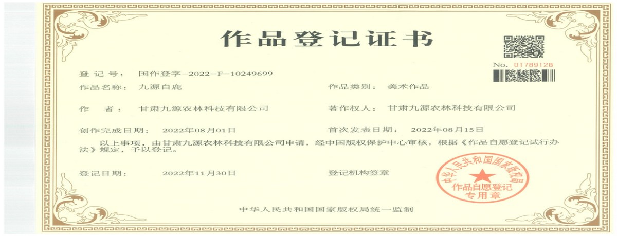 6月8日,甘肃九源农林科技有限公司取得质量管理体系ISO9001认证
