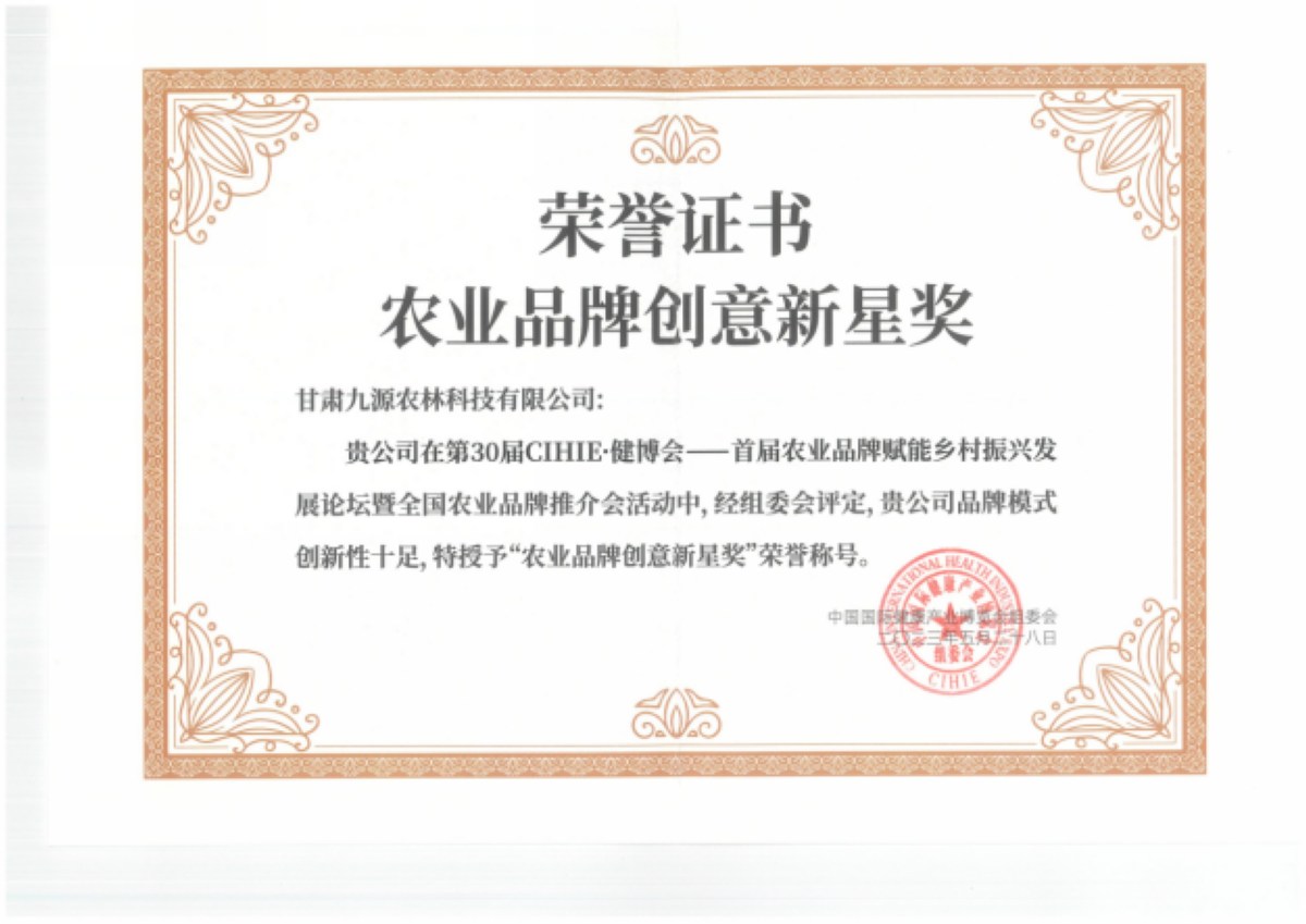 10月16日,甘肃九源农林科技有限公司被甘肃省科学技术厅、甘肃省财政厅、国家税务总局甘肃省税务局认定为高新技术企业