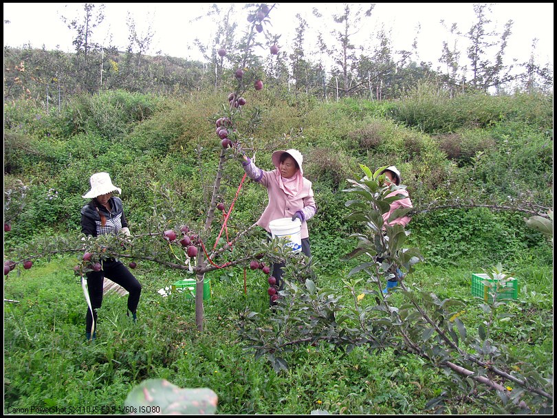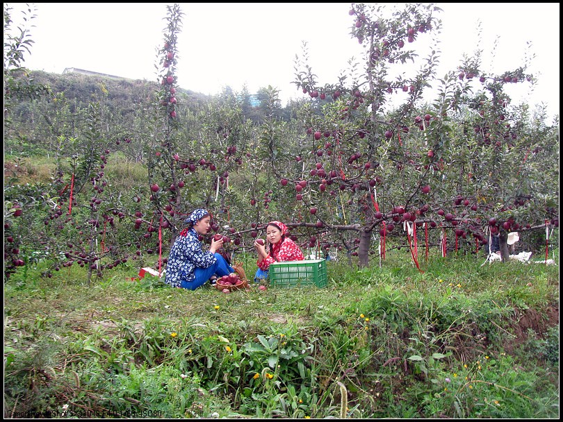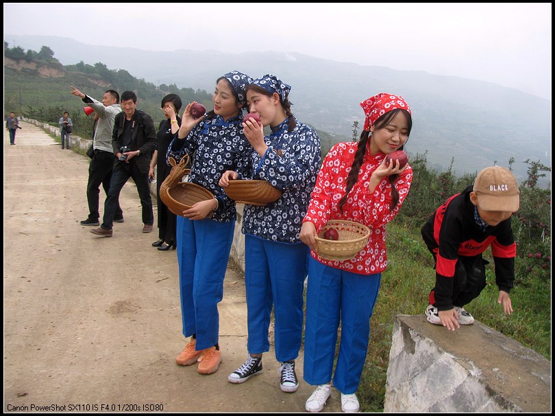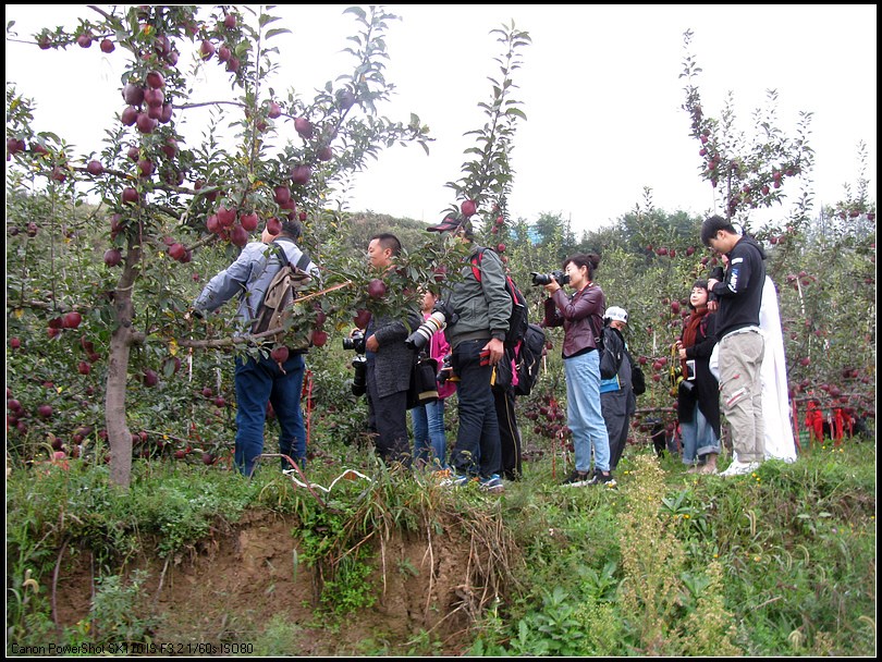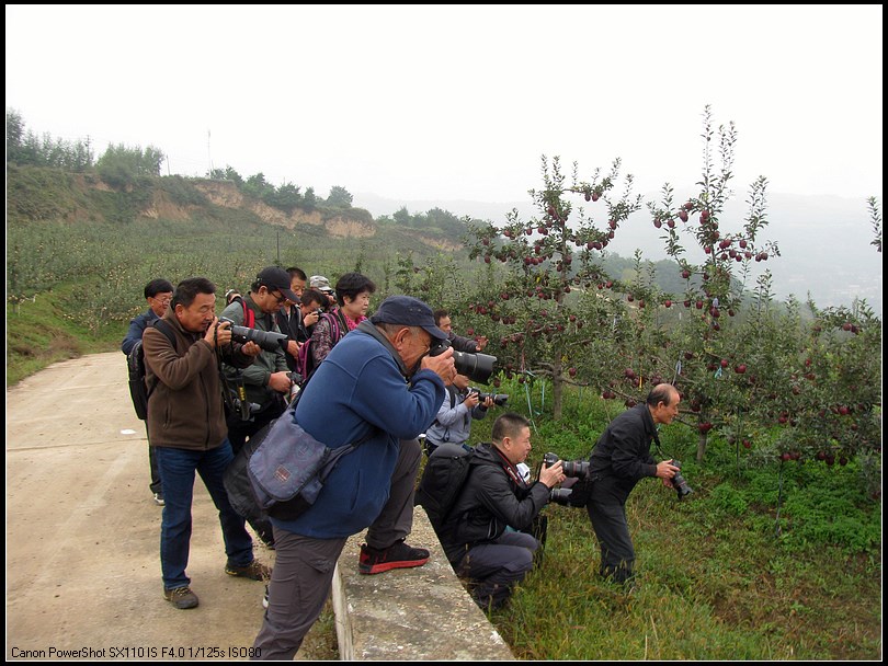 采风团的摄影师来到麦积区花牛镇元柳村天水花牛苹果集团元柳潘苹果基地,采摘苹果的果农们像迎亲戚一样把摄影师迎到地里。看到满山遍野的花牛苹果,大家兴奋异常,举起相机,开始了拍摄活动。
