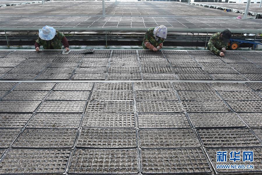 3月8日,在甘肃临夏国家农业科技园区的温室里,工人们在集中育苗。早春时节,气温回升,各地农民、合作社、农业企业等抢抓农时,进行育苗、春管等作业,开始春天的忙碌。 新华社发(史有东 摄)