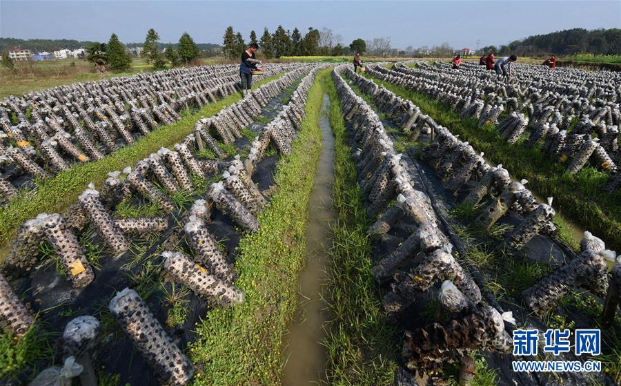 3月8日,在湖北省通城县大坪乡,农民在采摘黑木耳。早春时节,气温回升,各地农民、合作社、农业企业等抢抓农时,进行育苗、春管等作业,开始春天的忙碌。 新华社发(刘建平 摄)(来源:新华网)