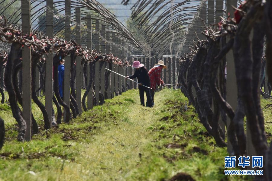 3月8日,农民在湖南省澧县一家葡萄专业合作社种植基地忙碌。早春时节,气温回升,各地农民、合作社、农业企业等抢抓农时,进行育苗、春管等作业,开始春天的忙碌。 新华社发(柏依朴 摄)