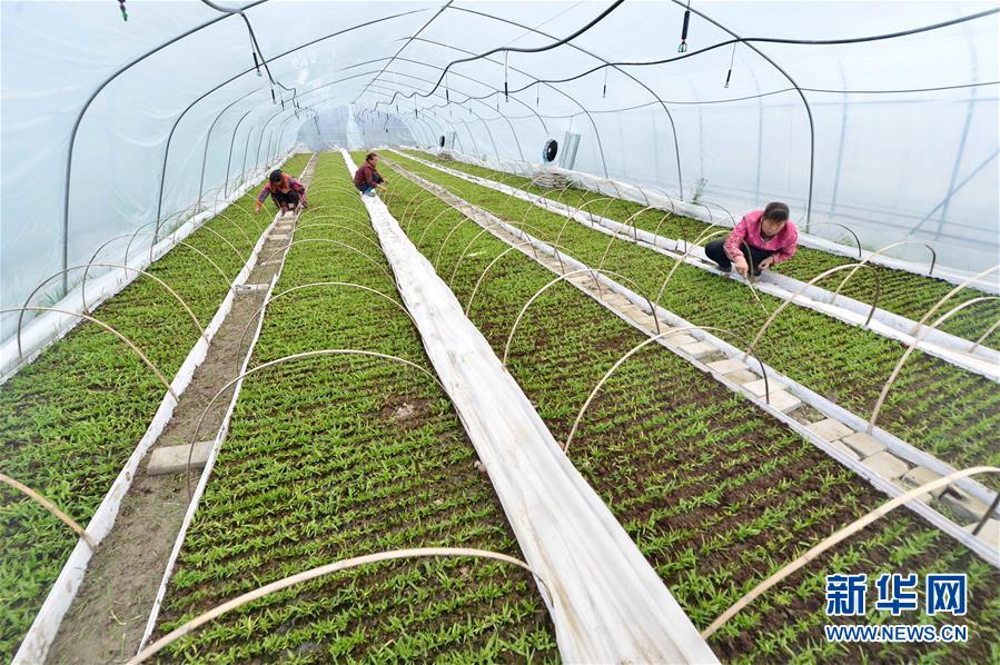 3月7日,在湖北省保康县黄堡镇一中药种苗基地,农民在大棚中管理中药材幼苗。早春时节,气温回升,各地农民、合作社、农业企业等抢抓农时,进行育苗、春管等作业,开始春天的忙碌。 新华社发(杨韬 摄)