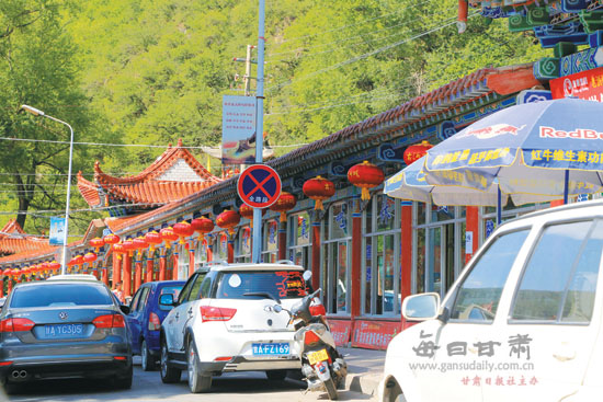 从写有“陇右第一名山”牌坊往景区方向进入,一路上道路较窄,且连续有几个急转弯,但公路两侧停放的各种车辆占据了大半个马路,从榆中及银山两个不同方向来的车辆驶过此处时,非常危险,有些路段甚至都无法错车。更重要的是,因为此处道路已进入景区,有很多游客徒步,也有游客在路边纳凉,由于没有划出人行道,加之道路较窄,因此该路段混乱的交通给游客留下了安全隐患。