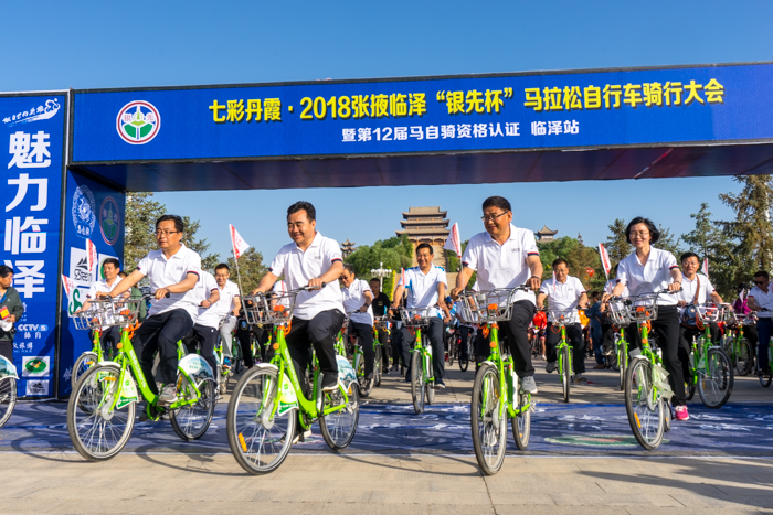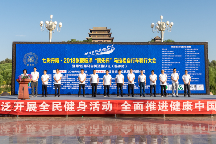6月17日,由市体育局、市旅游发展委员会、临泽县人民政府主办的七彩丹霞·2018张掖临泽“银先杯”马拉松自行车骑行大会暨第十二届全国马自骑资格赛(临泽站)在临泽县流沙河景区丹霞广场正式拉开帷幕。市委副书记、市长黄泽元宣布大会开幕。市委常委、统战部部长秦禾讲话。甘肃省自行车管理中心、甘肃省体工一大队、上海春秋国际旅行社有限公司、甘肃银先立达商贸有限责任公司、马自骑运动发展中心相关负责人参加开幕式。
