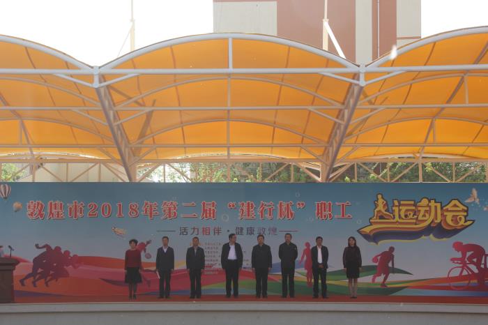 4月26日下午,敦煌市东街小学操场内人头攒动,全市24个单位近千人聚集在这里准备参加由敦煌市委、敦煌市人民政府牵头的敦煌市2018年第二届“建行杯”职工运动会。