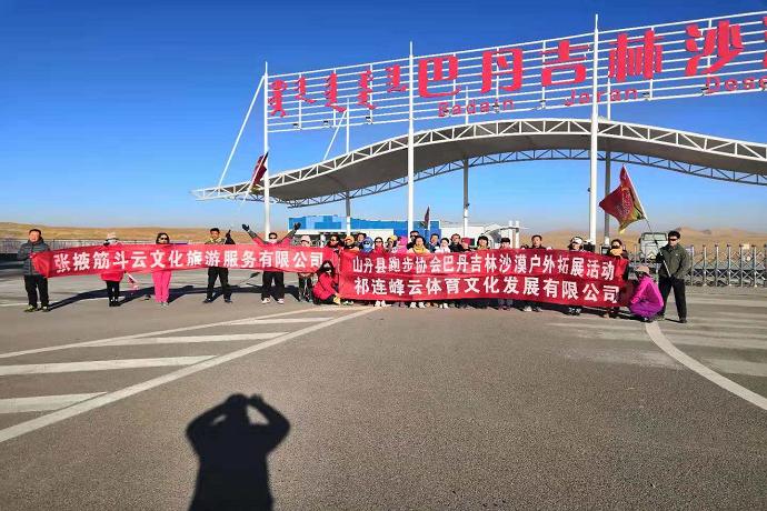 12月2日,山丹县户外拓展跑步活动在巴丹吉林沙漠举行。来自县内跑步爱好者100余人参加活动。活动以挑战自我、超越自我、培养团队精神、训练合作意识为目的。