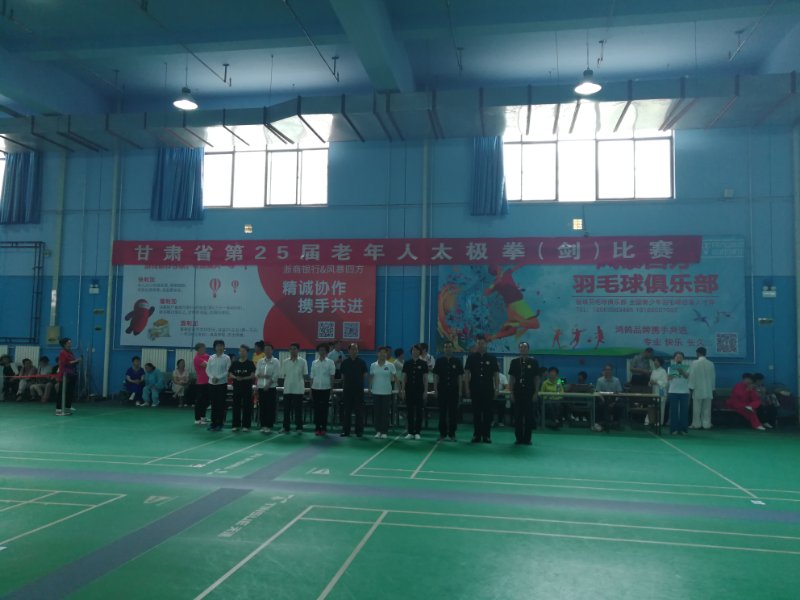 为贯彻落实《健康中国2030规划纲要》、《全民健身条例》和《全民健身计划(2016—2020年)》,推进健康中国的建设,由甘肃省老年人体协主办的甘肃省第二十五届中老年人太极拳(剑)比赛于2018年7月24日上午在甘肃体工一大队全民健身综合馆开幕。
