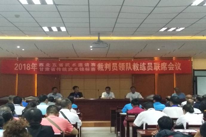 中国甘肃在线讯 8月18日,2018年西北五省武术邀请赛暨甘肃省传统武术锦标赛裁判员、领队、教练员联系会议在山丹县全民健身中心十楼会议室召开。参加2018年西北五省武术邀请赛暨甘肃省传统武术锦标赛的裁判员、领队、教练员140余人参加会议。会议由甘肃省武术协会秘书长段俊文主持。