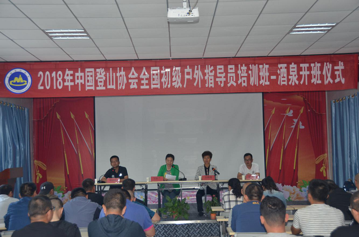 酒泉市体育局党组书记、局长王红兰就酒泉户外资源情况进行了介绍并致欢迎词。她指出:2018年,是国家体育产业飞速发展的重要时期,也是酒泉户外运动发展的黄金时期,为满足蓬勃发展的户外运动对各类户外人才的需要,2017年酒泉举办了2期全国初级户外指导员培训班,今天我们又在这里举办第3期全国初级户外指导员培训班,为户外运动的健康发展做好人才保障工作,今年10月中旬,酒泉还将举办全国中级户外指导员培训班,欢迎各位学员继续到酒泉学习升造。并对培训班提出了:珍惜机会、认真学习、不断探索、把好安全的要求,并预祝培训班安全顺利圆满成功。