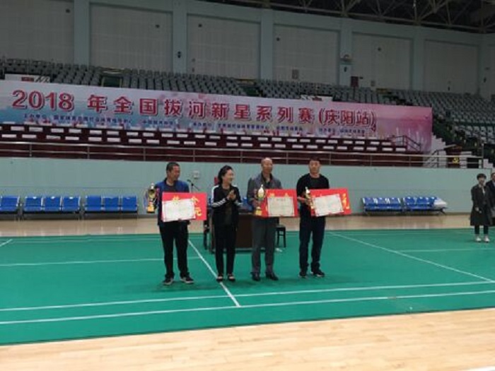 9月8日—9日,由国家体育总局社会体育指导中心、中国拔河协会主办,甘肃省社会体育管理中心 、庆阳市体育局承办、庆阳市体育馆协办的2018年全国拔河新星系列赛(庆阳站)在庆阳市体育馆成功举办。全国拔河新星系列赛是中国拔河协会为贯彻《健康中国2030规划纲要》和《全民健身计划(2016-2020)》而举办的最高水平群众性拔河赛事,旨在促进拔河运动在全国的普及开展,通过与各省市全民健身活动有机结合,让广大人民群众感受拔河竞技的魅力,学习科学规范的健身方式。赛事共有17个分站赛和一个总决赛,庆阳站是第12站,共有11支代表队参加了公开组600公斤级的比赛,经过两天的激烈角逐,陇东学院代表队获得冠军、西峰区代表队获得亚军、环县代表队获得季军,冠亚军代表队将有资格参加11月在广东省惠州市举办的总决赛。