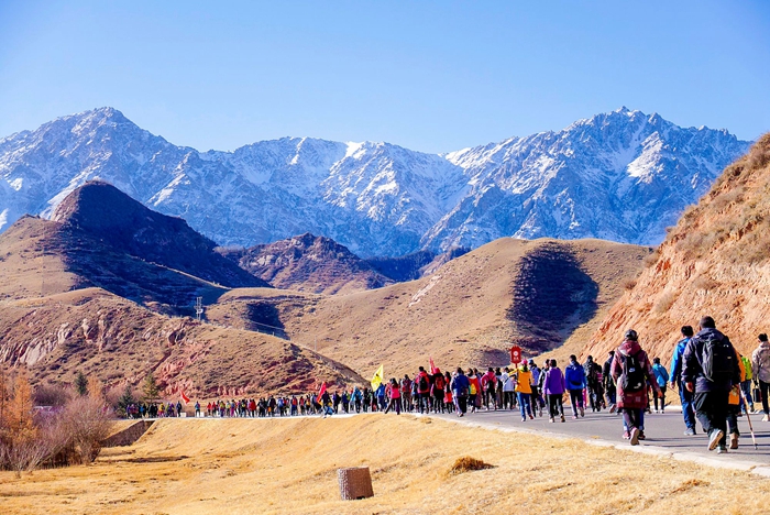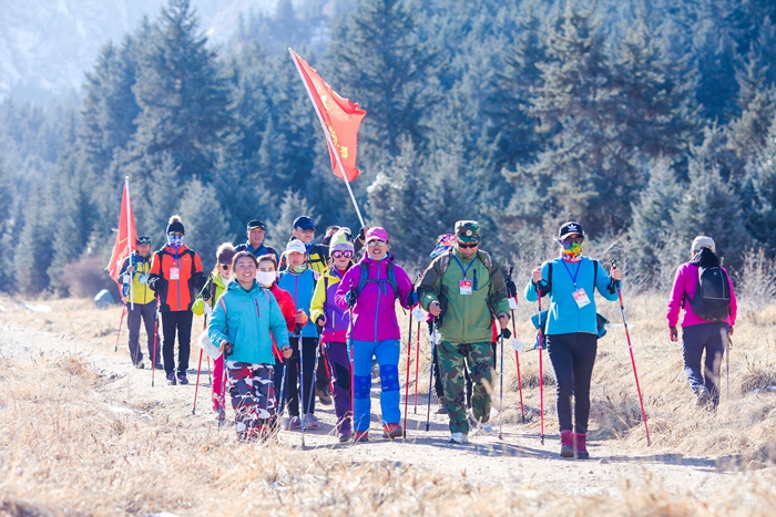 全国徒步大会是中国登山协会主办并重点打造的公益性全民健身系列品牌活动。2018年全国徒步大会“双11”持杖行走联动日以“全民健身·健康中国”为主题,徒步线路从马蹄寺景区大门出发,途径千佛洞石窟、兰花坪、临松雪山等景点,全程约10公里。徒步线路展现了冬季马蹄寺不一样的风景,让马蹄寺最美的一面尽数展现在了活动参与者眼前。蓝天白云之下,皑皑雪峰矗立眼前,翠绿的松柏布满山间,脚下的草甸一片金黄,阔叶林则已换上冬装,既有北国风光之雄浑,又有南国山水之娇秀,参与者在大自然面前放下了城市的喧嚣,在路途中放飞心情,尽享自然之美。(来源:甘肃省体育局)