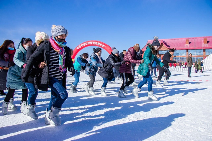 活动期间,专业滑雪教练员进行滑雪表演,并举行雪地徒步越野、雪地拔河、雪地袋鼠跳、雪地行走、雪地排球等户外运动项目,以及动感雪圈接力、雪地跳绳、雪地踢毽子等嘉年华体验项目和拔棍、顶杠子等民族体育项目。