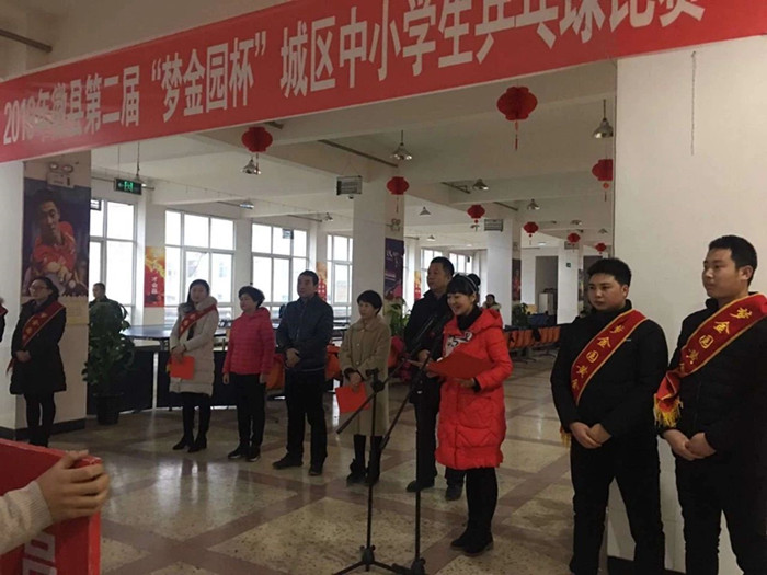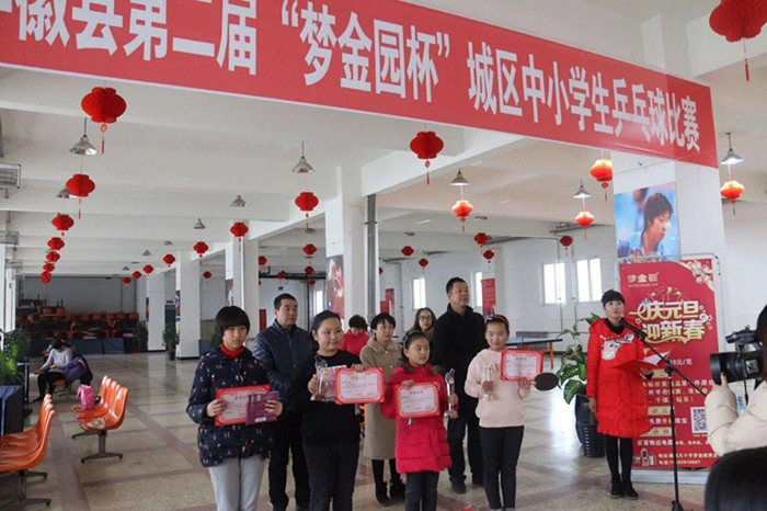 为庆祝2019年“元旦”,2019年1月1日上午,由县体育总会、县乒乓球协会主办,县四中、县社会体育指导员协会协办的第二届“梦金园杯”城区中小学生乒乓球比赛在县四中乒乓球馆举行,出席本次活动的有县少年儿童业余体校、县四中、体育总会、社会体育指导员协会、乒乓球协会、梦金园黄金旗舰负责人和代表,参加本次比赛的共有90名运动员,比赛历时一天。