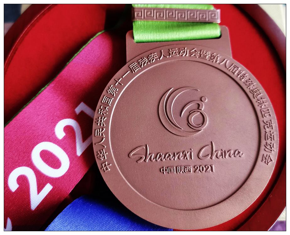奖牌的背后,是异于常人的努力,王鹏每天坚持锻炼,脚掌磨破了用胶带粘上再练……这次参赛,他是对自我的突破,也是对全市人民热切期盼的回应,更是对党和政府温暖关怀的报答。