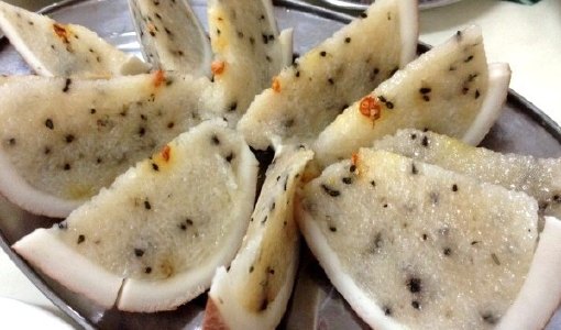 海南特色美食之一,椰子饭是一种极为独特的食品。外部是椰肉,里面是糯米,加上特殊的香料放在锅里面蒸很久,是海南传统农家小吃。