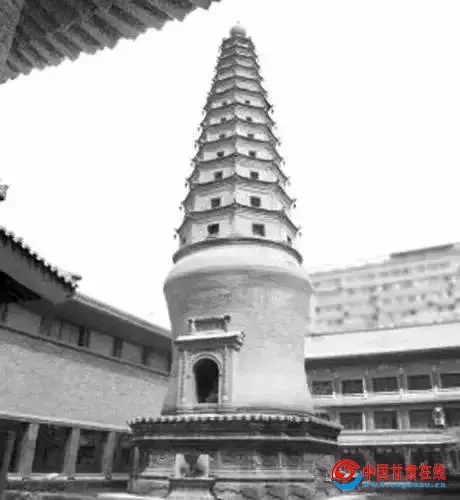 木塔为唐代所建。据史料记载,唐贞观年间(627-649年),地处西域的高昌国国王鞠文泰(甘肃榆中人)率其部众到长安晋见李世民,往返均途经兰州。为表达高昌国同唐王朝友好的愿望,于唐贞观九年(635年)他在木塔巷处兴建了一座寺院,名嘉福寺。寺内修有一木塔,故又称木塔寺。自明代赐名木塔寺后,该巷遂改称为木塔寺巷,之后逐渐简称为木塔巷,沿用至今。