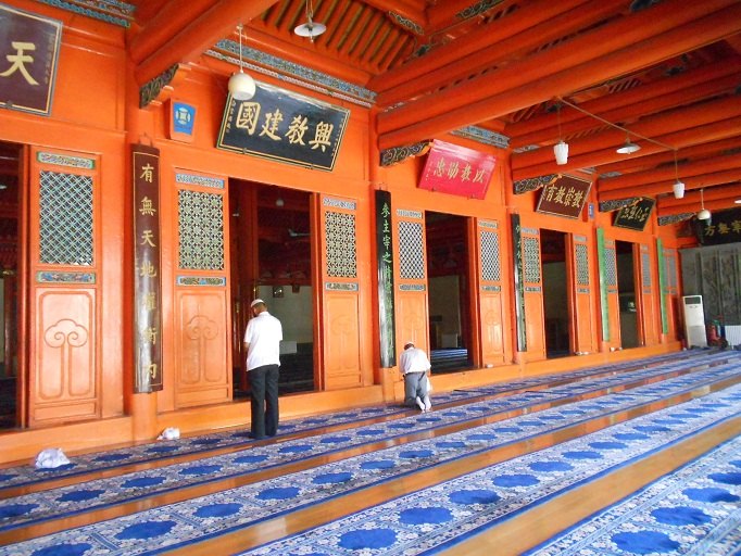 这里现在的建筑建于1913年,刚站在寺外便可以看到一座宏伟的伊斯兰风格圆拱形建筑,这便是清真寺的门楼,两旁是两座宣礼塔,也是典型的伊斯兰建筑。而走进内部则是几座汉式宫殿,宫殿的顶端还有藏传佛教样式的屋顶,十分独特。进入后可以参观各个建筑,其中礼拜大殿不允许游客进入,但可从门口向内观看和拍摄。建筑内还有一些简单的展览,比如展示了世界上最大的几座清真寺的模型介绍等,可以一一参观。