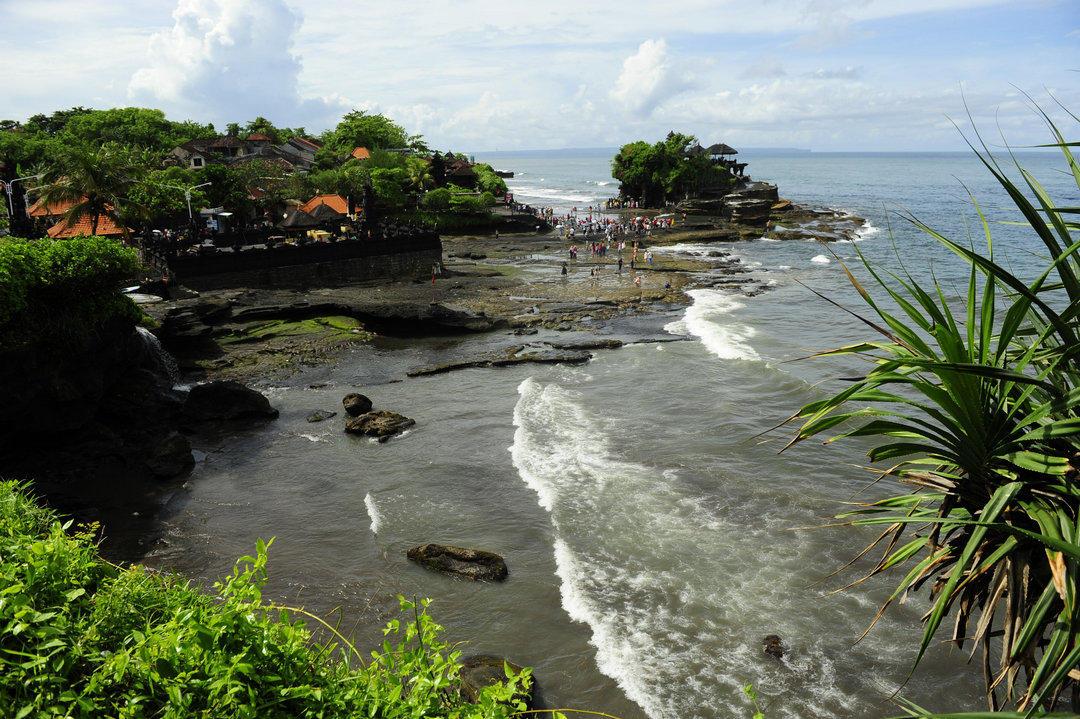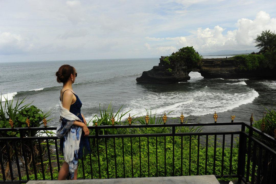 图为3月8日的巴厘岛景区"海神庙",海滩边,是密密麻麻的人群。