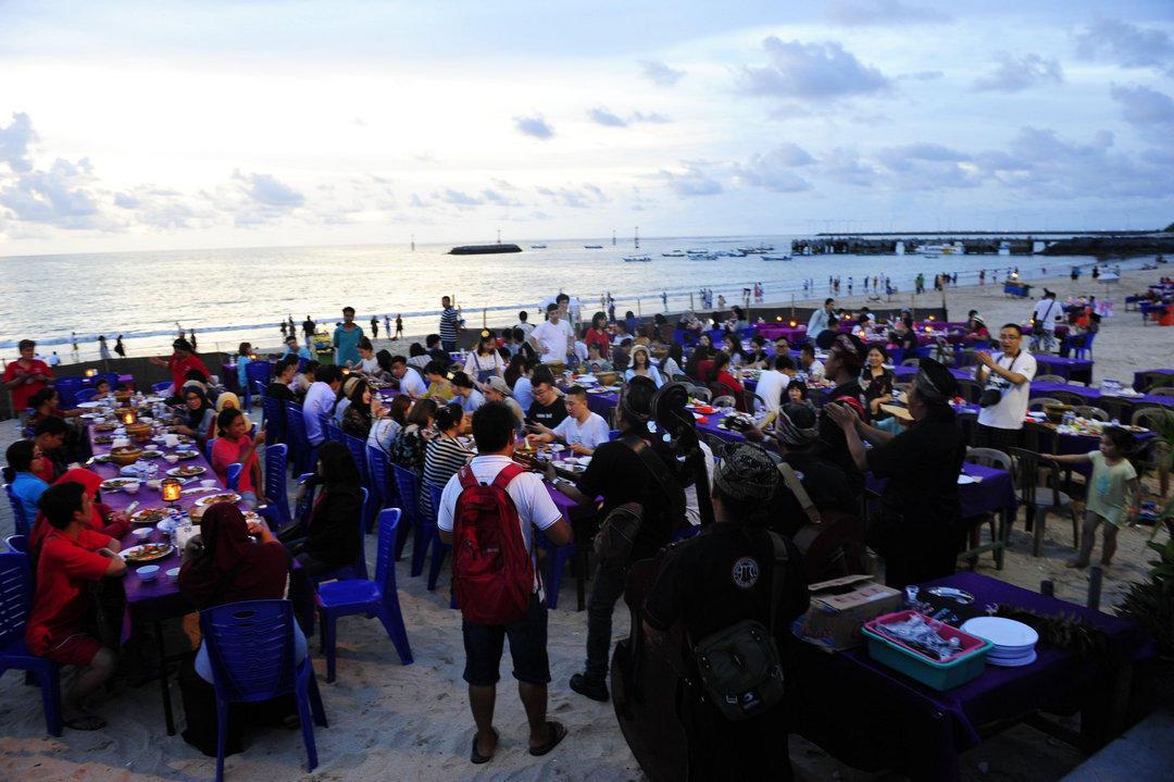 笔者以为受火山喷发影响巴厘岛旅游会清净许多,于是来了,结果,几天行在巴厘岛街头及景区,看到的,却到处是人海。图为3月7日巴厘岛著名看日落的金巴兰海滩,在此吃海鲜观日落的游客,座无虚席。