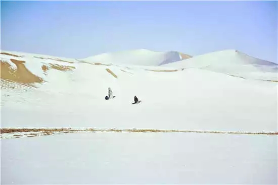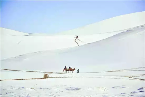 人都说:晴天不如有云天,有云天不如夜空,夜空不如雪天。而这雪天的沙山当中又数雪后初霁的鸣沙山最为美丽动人。