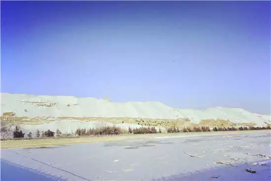 当你站在莫高窟前上向西眺望,莫高窟银装素裹。崖体洞窟面无遮无拦,在阳光下冰雪消融,露出了斑驳的崖面,而断崖的全身还在皑皑白雪的覆盖下。依稀可辨的个个洞窟似隐似现,而洞窟边上的白雪熠熠生光,与崖面灰褐形成反差,远远望去梵音,这就是敦煌最出名的雪后莫高窟。