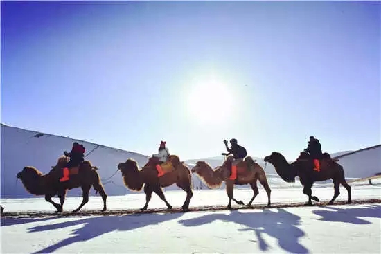 当你踏过鸣沙山,穿梭在这银装素裹的天地间,猛然间眼前一亮,凹山中的月牙泉扑面而来,真是大自然的点睛之笔。
