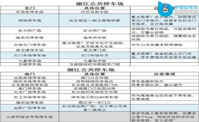 自驾到丽江车友有福了,纳西妈妈经过两个通宵收集整理了史上最完整的丽江停车攻略,涵盖了几乎丽江所有的停车场,到丽江再也不愁住在古城的客栈找不到停车的位置了。详情见下图: