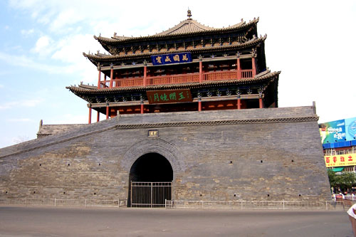 【镇远楼】 镇远楼俗称鼓楼,又名靖远楼,位于张掖市中心,东西南北四条大街交汇于此,是河西走廊现存最大的鼓楼。楼为三层木构塔形,飞檐翘角,雕梁画栋,结构精巧,造型雄伟壮观。基座有“十”字洞通向东西南北与四条大街衔接。楼上四面悬有匾额:东为“金城春雨”,西为“玉关晓月”,南为“祁连晴雪”,北为“居延古牧”。
