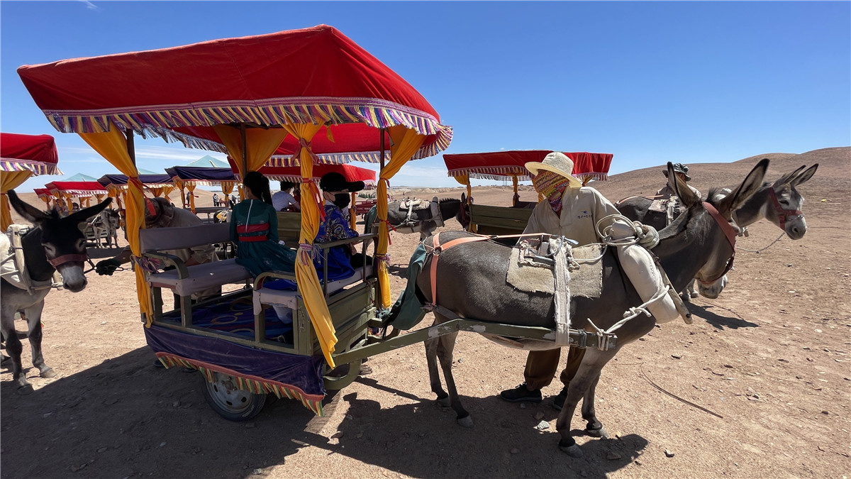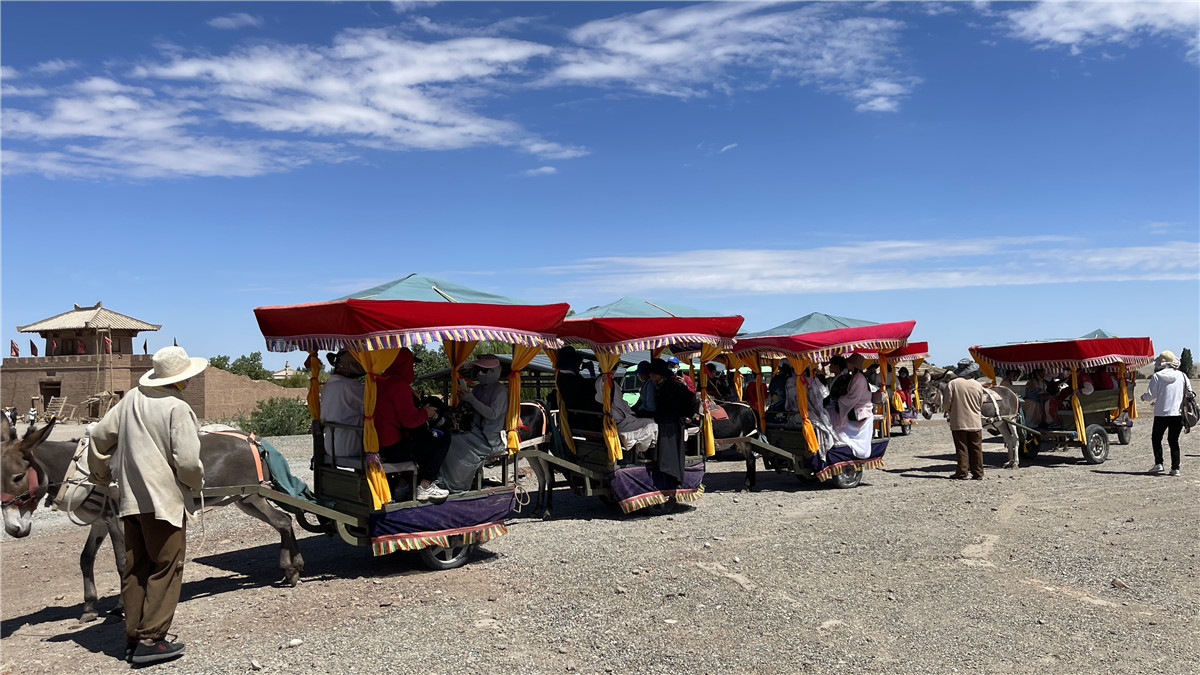 驴车、马车、骆驼是古代最常见的交通工具,穿上汉服,坐上驴车,让人仿佛回到古时候的阳关。