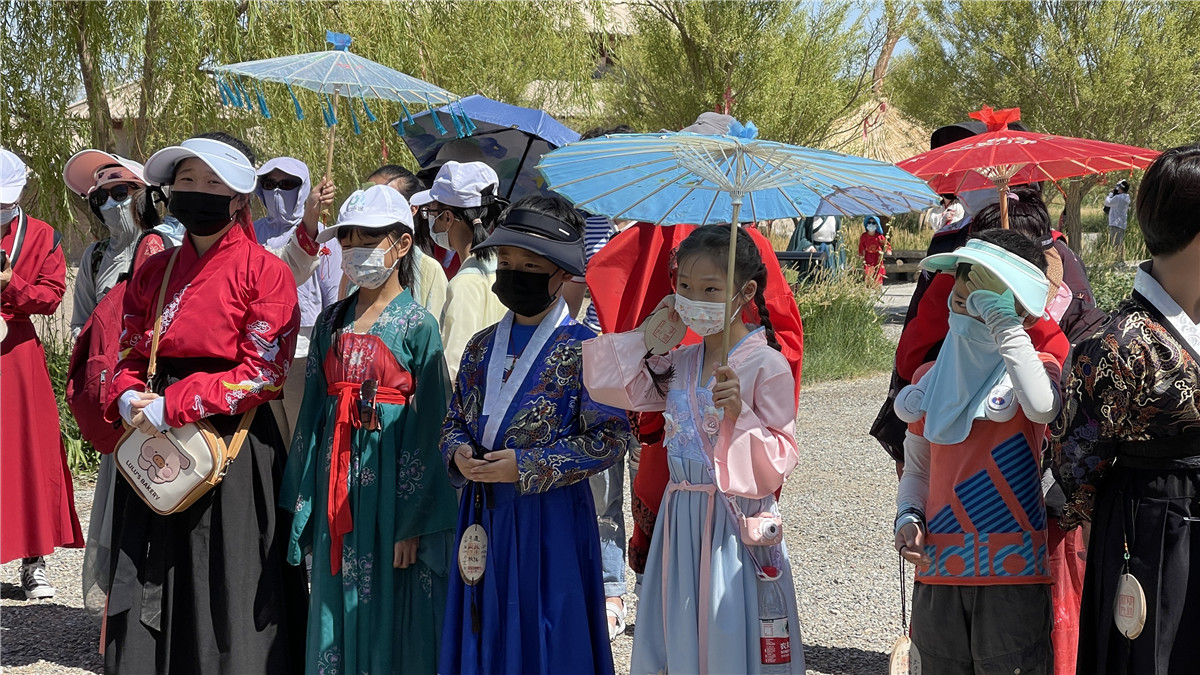 着唐装汉服更能深切地感受汉唐时期古阳关曾经的兴盛。唐装、汉服、花伞.....孩子们的体验是多元的,孩子们得到的快乐也是多维的。