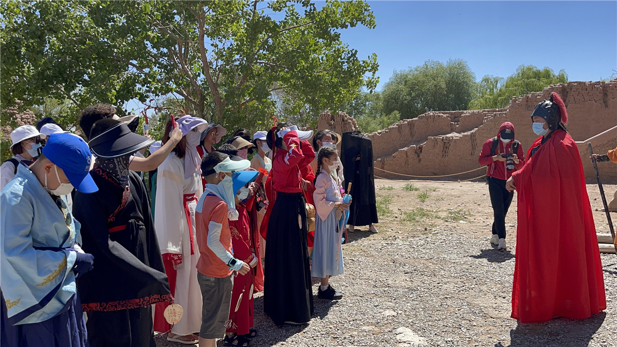 古阳关下,各种古代元素利用和出现,让古风再现,情景再现,让学子们的研学体验更加真切。
