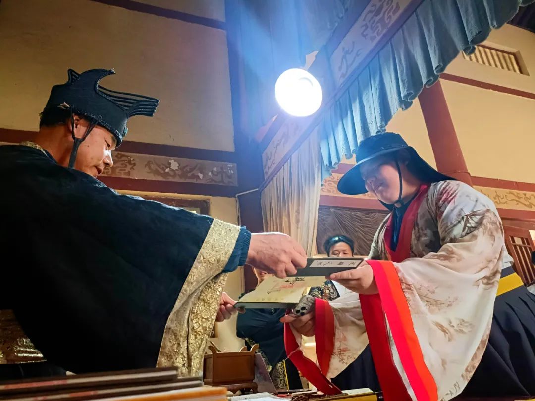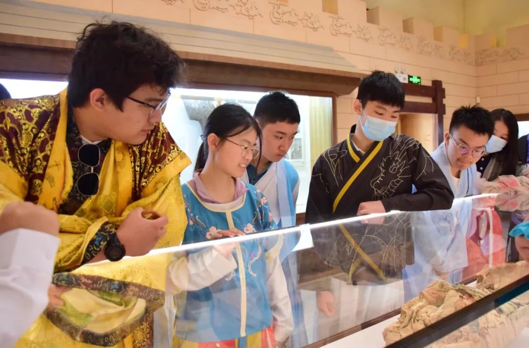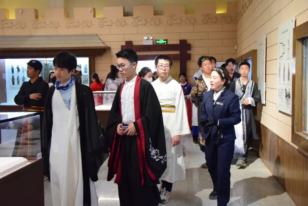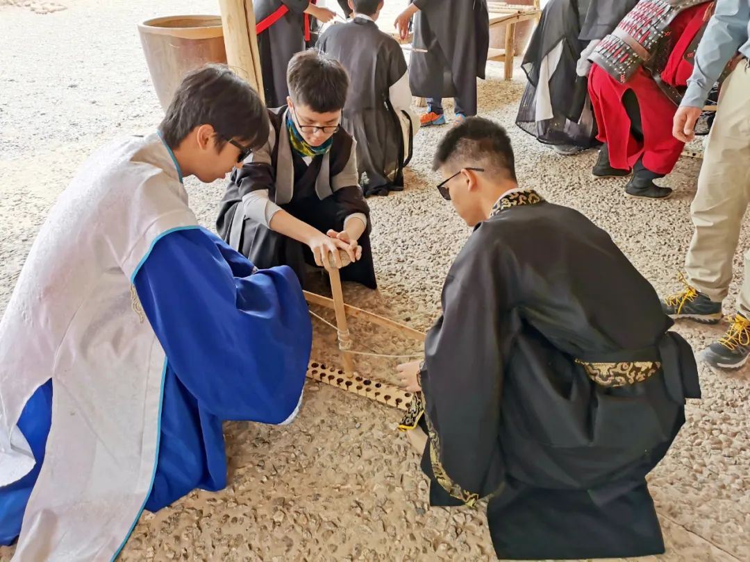 学生们身着汉服,在研学导师的规范引导下,整齐列队学习汉代揖礼,彰显礼仪之邦、大国风范。