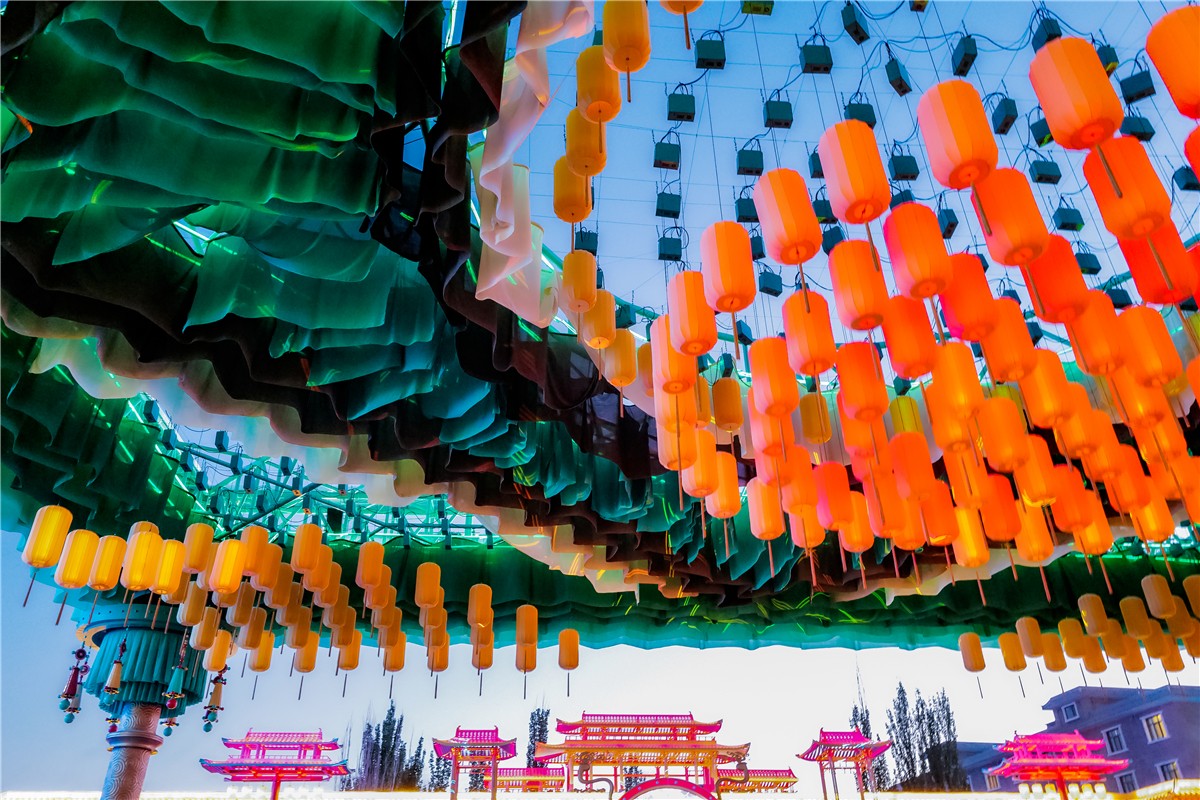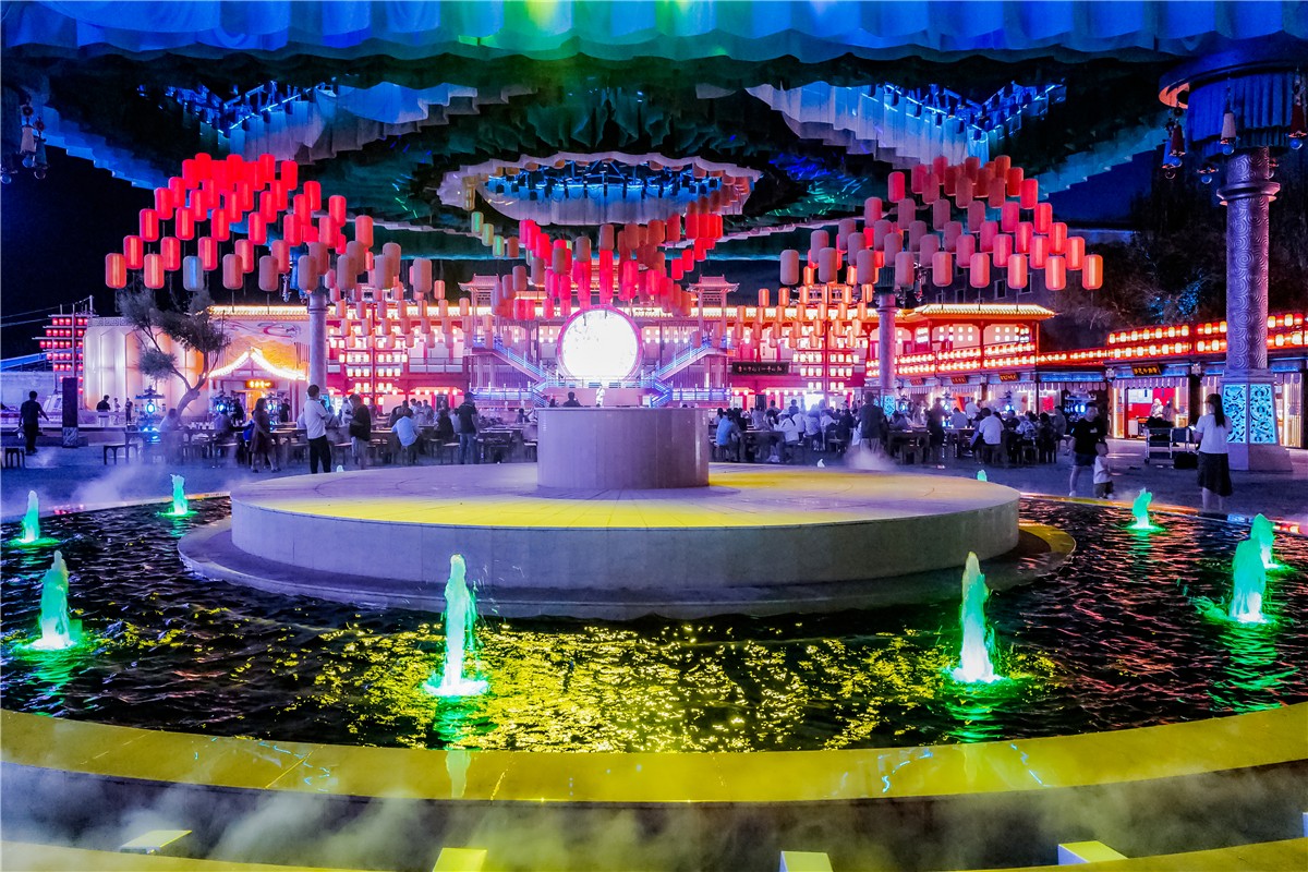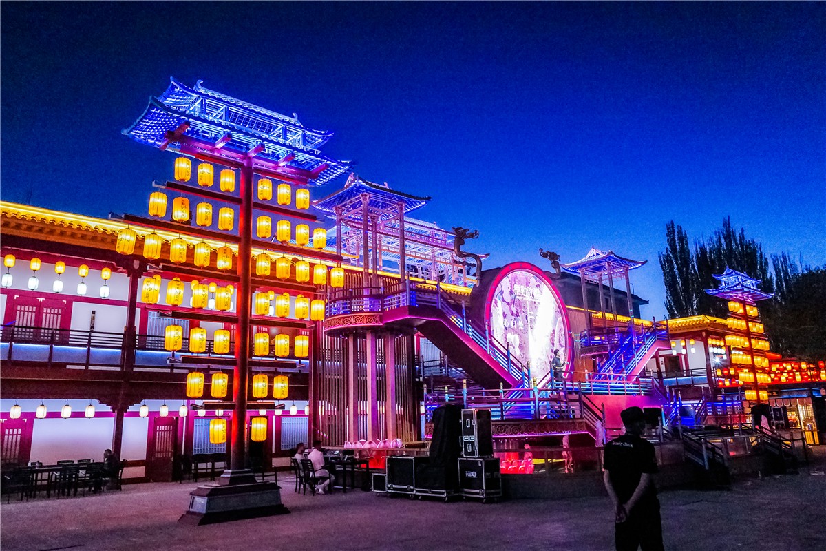 以古丝绸之路文化交融为背景打造的丝路非遗文化互动街区,云阙飞仙牌楼、宾至叠瀑、云阙仙宫、大唐安康踏歌台、燃灯塔......让观众仿佛梦回大唐盛世。