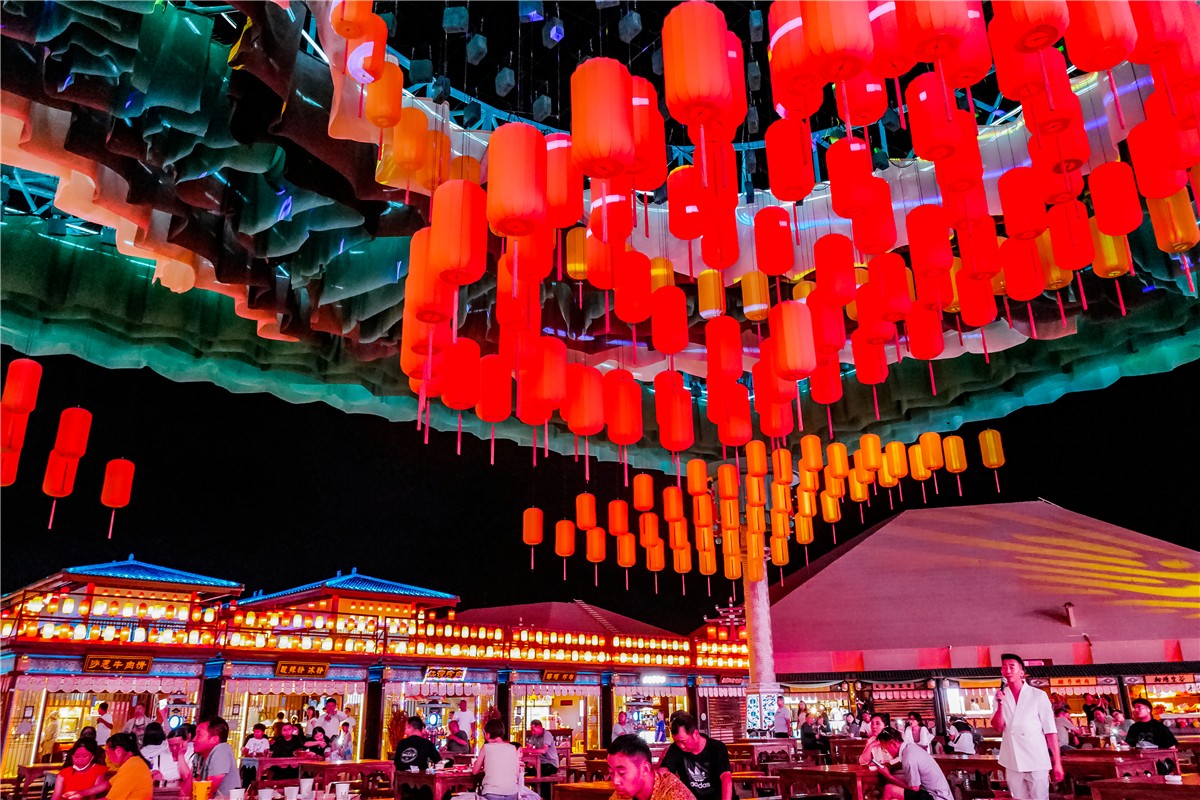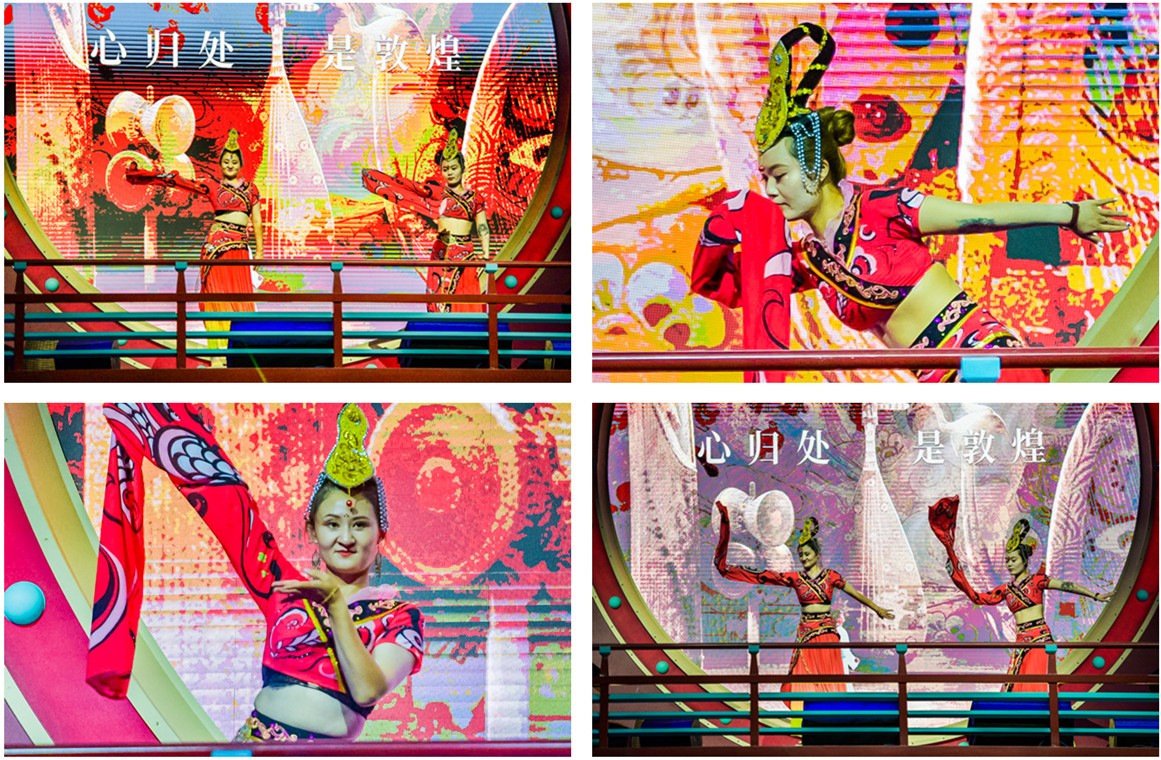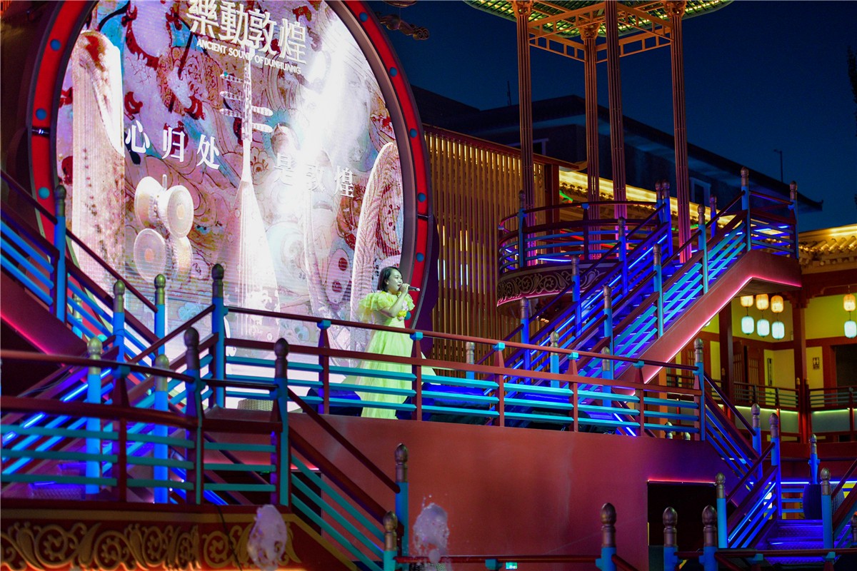 该市集还原了主剧目《乐动敦煌》第三篇章《上元踏歌》场景,围绕“剧”“艺”“食”“趣”四大亮点,打造了集演艺、餐饮、研学、非遗、文创、西域文化展示、常沙娜艺术馆等为一体的文旅综合体,为广大观众提供敦煌文化一站式沉浸体验。
