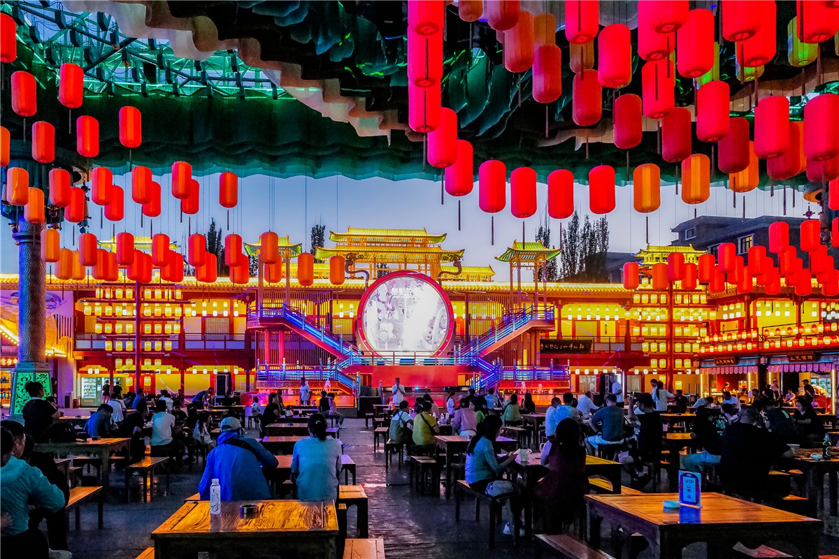 市集建成东市汉唐街,西市西域街和中心美食市集广场。
