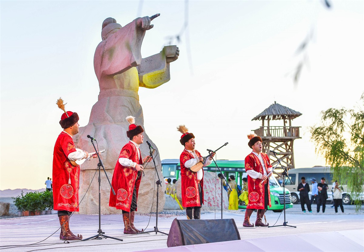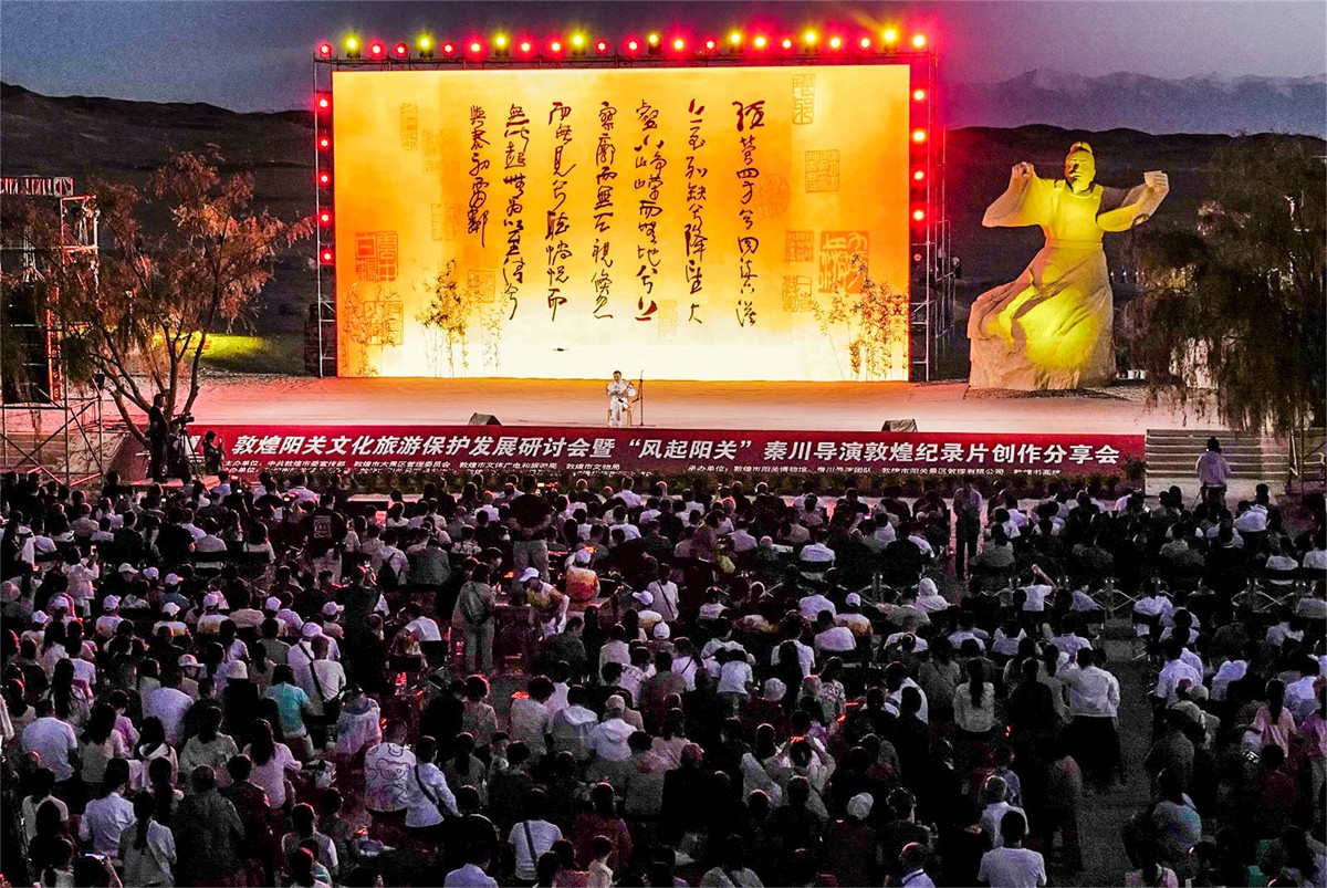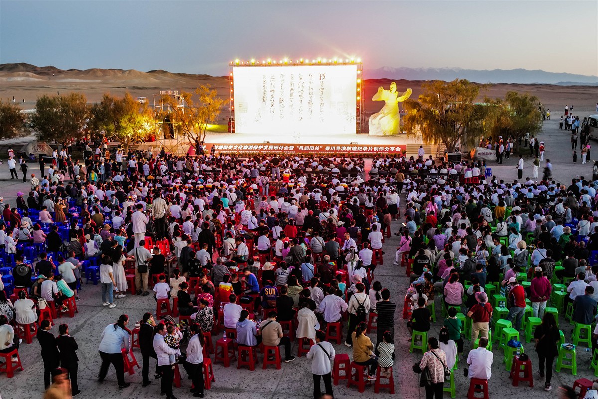8月26日晚,敦煌阳关文化旅游保护发展研讨会暨“风起阳关”秦川导演敦煌纪录片创作分享会在阳关景区举行。专家学者、艺术家和文化爱好者们济济一堂,交流互动,共同领略丝绸之路文化和敦煌艺术的魅力,勾画阳关美好的未来。(王斌银 年超君 张奕媛 周玉玲)