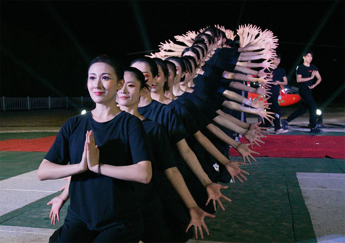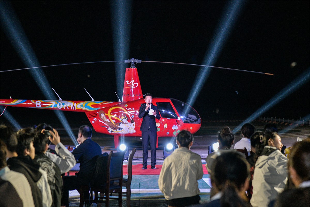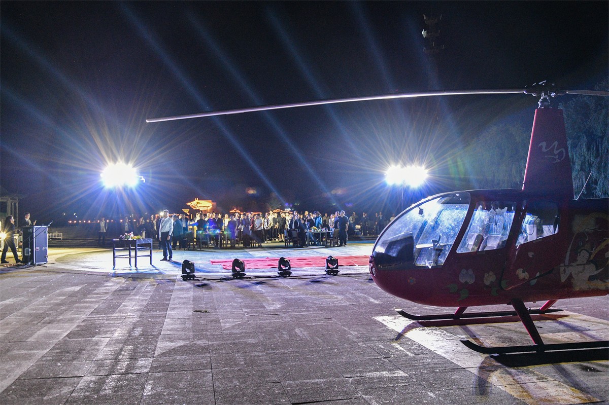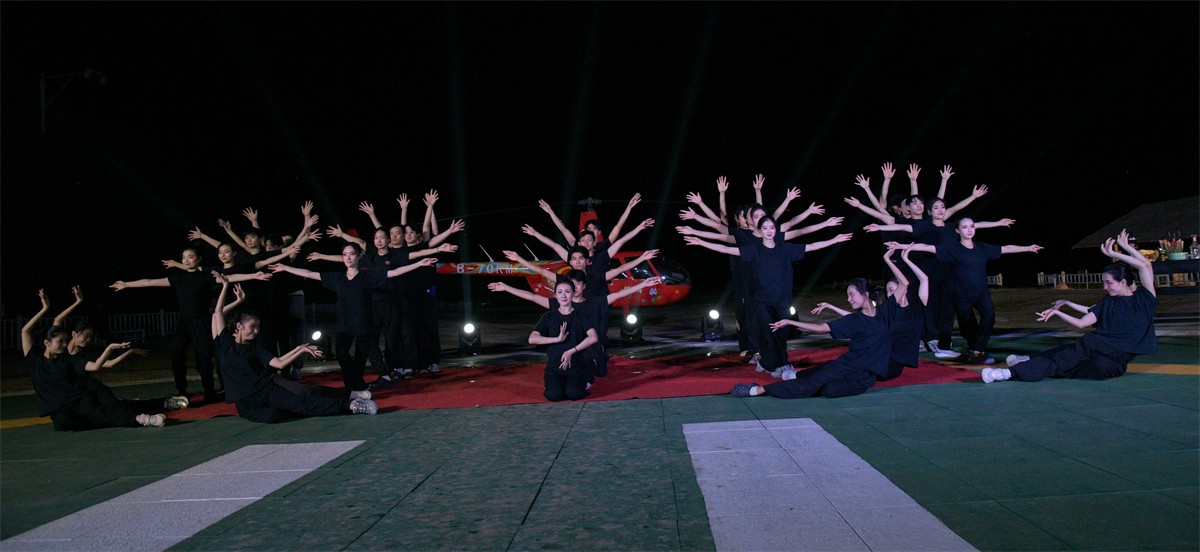 9月17日中秋佳节,花好月圆之日,敦煌市飞天通用航空有限责任公司携手中国残疾人艺术团音乐舞蹈剧《千手千眼》演职人员在敦煌月牙泉景区飞天通航停机坪开展了一次别开生面的中秋联谊演出活动。(王斌银 文/摄影)